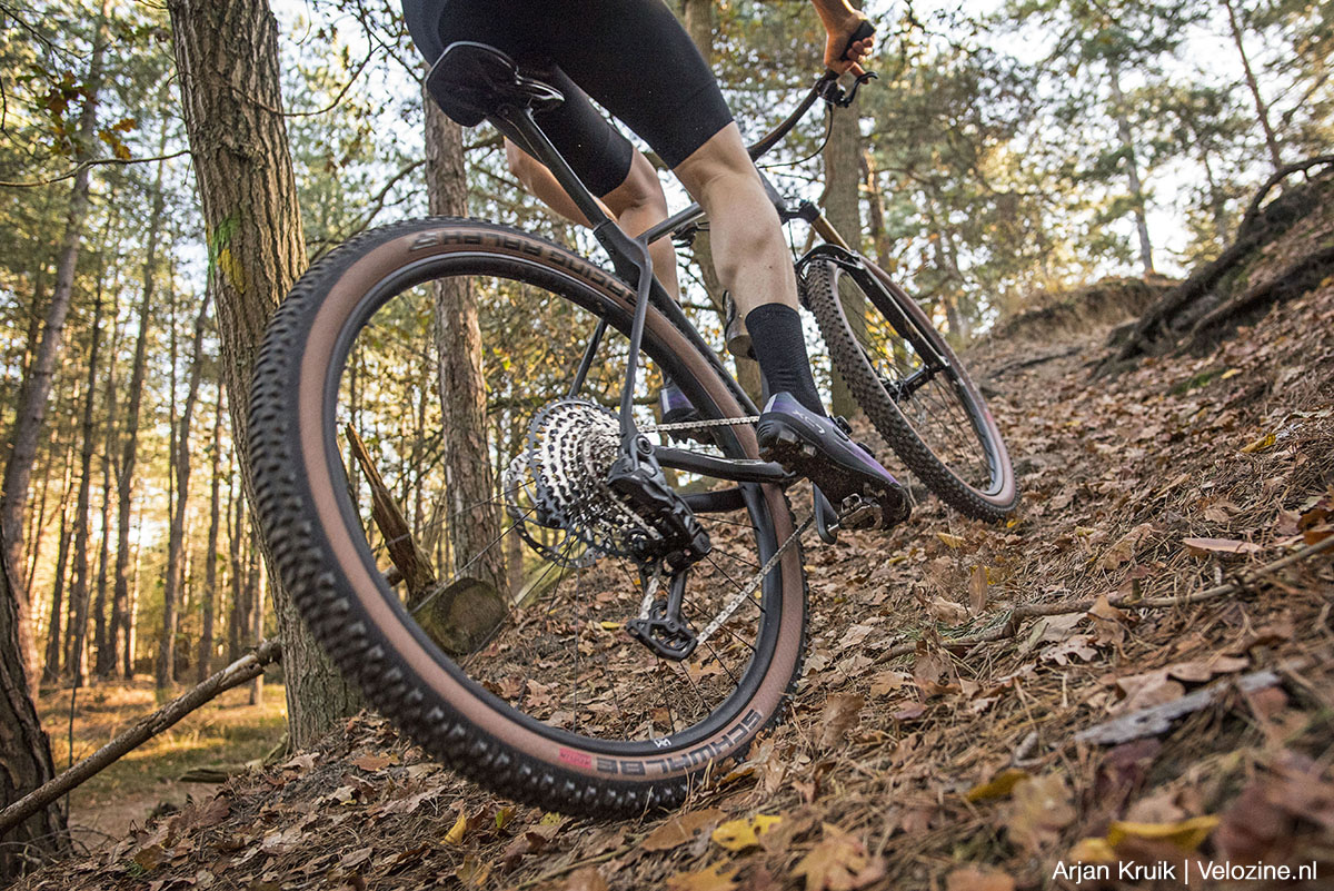Een stijve xc-schoen met dubbelzijdig SPD-pedaal is voor xc logisch. Voor klassiek xc-gebruik komt de combinatie Shimano XC7-schoenen met Shimano XT XC M8100-pedalen als een veilige én snelle keuze uit de bus. De stijve carbon zool (stijfheid 9/12) zorgt voor efficiënte krachtoverbrenging en de dubbelzijdige XT-pedalen klikken intuïtief in en uit. Lopen is wat houterig, maar op de mtb-route is dit setje een no-brainer.