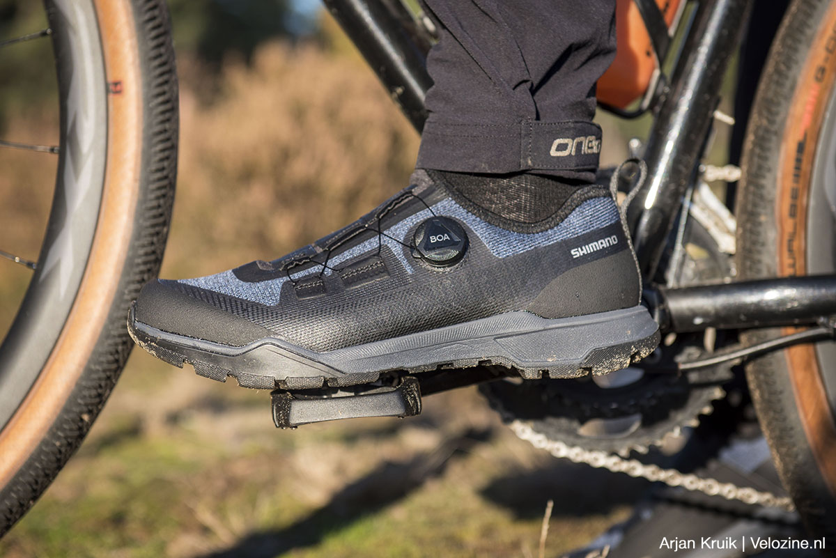 Voor ieder type pedaal maakt Shimano een bijpassende schoen, met een constructie, pasvorm en stijfheid die passen bij het beoogde gebruik. Ik heb de afgelopen maanden vier verschillende combinaties geprobeerd: het klassieke dubbelzijdige SPD-pedaal met een klassieke xc-schoen, een dubbelzijdig SPD-pedaal met kooi in combinatie met een trailbike-schoen, een enkelzijdige SPD-pedaal zónder kooi met een gravelbike-schoen en tot slot een enkelzijdige SPD-pedaal met kooi met een toerfietsschoen.