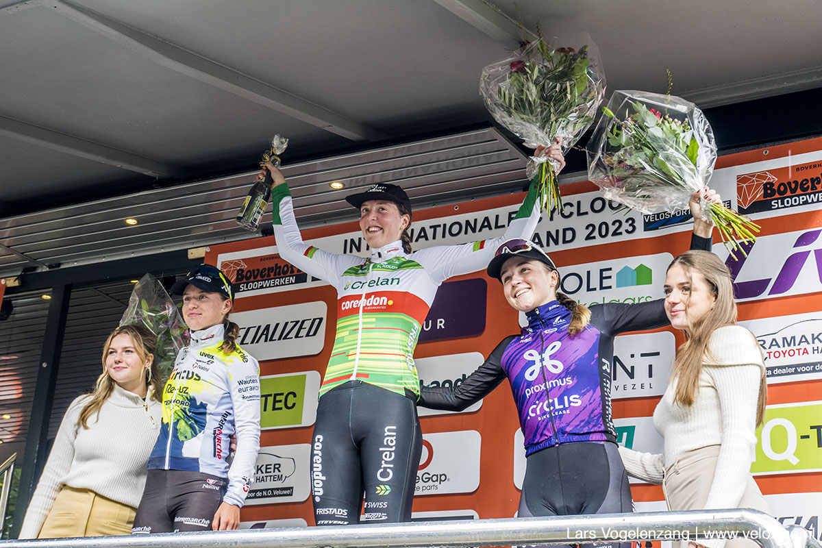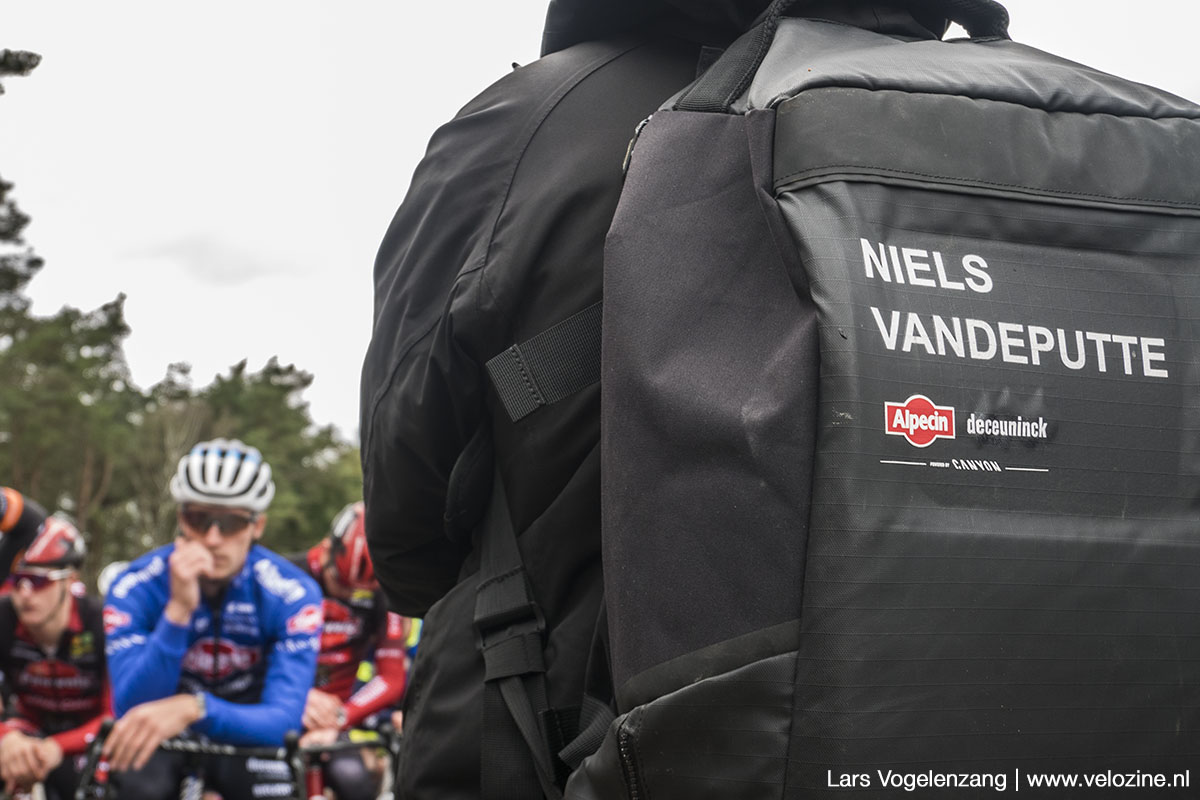 Na de huldiging hoor ik winnaar Niels Vandeputte tegen een bekende zeggen dat hij het rondje van de UCI cyclocross Heerderstrand een mooie vond. Ik vraag hem waarom: “Toen ik de video van Puck (zijn teammaat) had gezien, wist ik dat ik hier vandaag wilde starten. Het is een mooie afwisseling van strand en bosjes. Daarbij is het zandgrond, dus het wordt nooit teveel geploeter, ook als het nat wordt. En niet téveel bochten, dus lekker snel, en dat bevalt me wel. Alleen de terugdraaiende bocht van asfalt naar onverhard was bij de start met 50 kilometer per uur een beetje sketchy. Maar alles is goed gegaan.” Op mijn vraag of het een lekkere werkdag was zo, antwoordt hij met een grote glimlach. En daar sluit ik me graag bij aan.