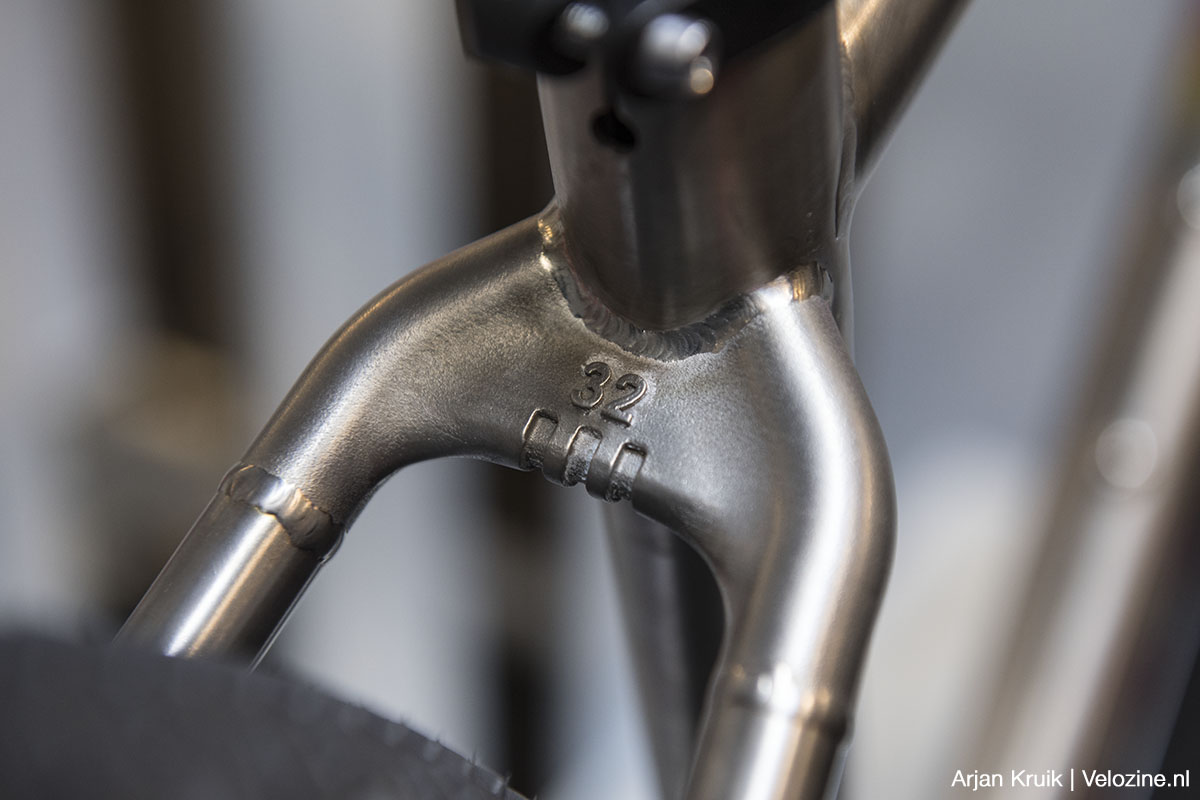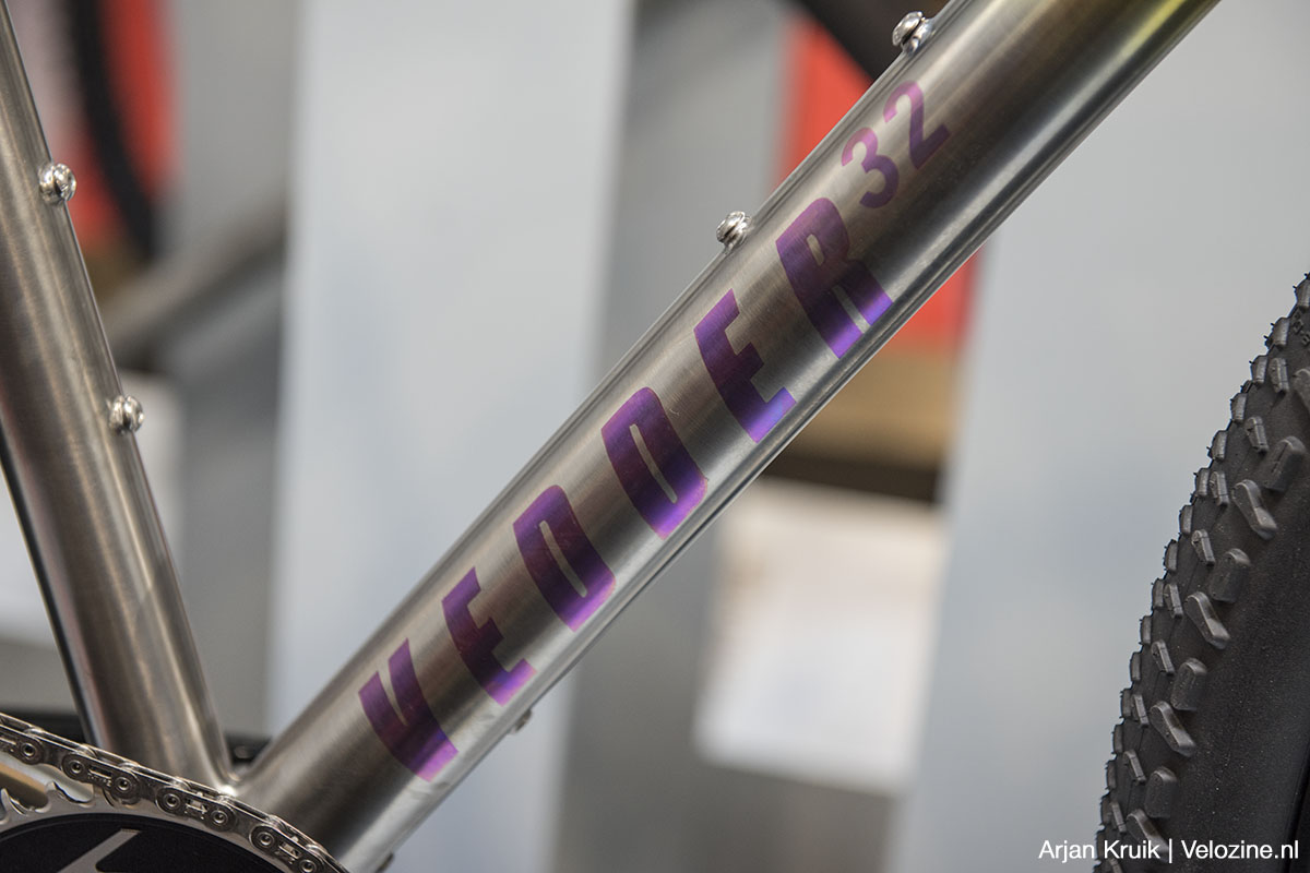 Het eerste prototype 32 inch band is dus een gravelband en dus een overmaatse G-One Rx Pro. Om die ook netjes voor de dag te laten komen, vroegen ze kort voor Kerst aan Michiel Burgerhout van Unpaved of-ie een passend titanium gravelbikeframe kon maken. Michiel zag het waarschijnlijk als een mooi excuus om onder de kerstinkopen uit te komen en ging aan de slag. En niet bepaald onverdienstelijk: