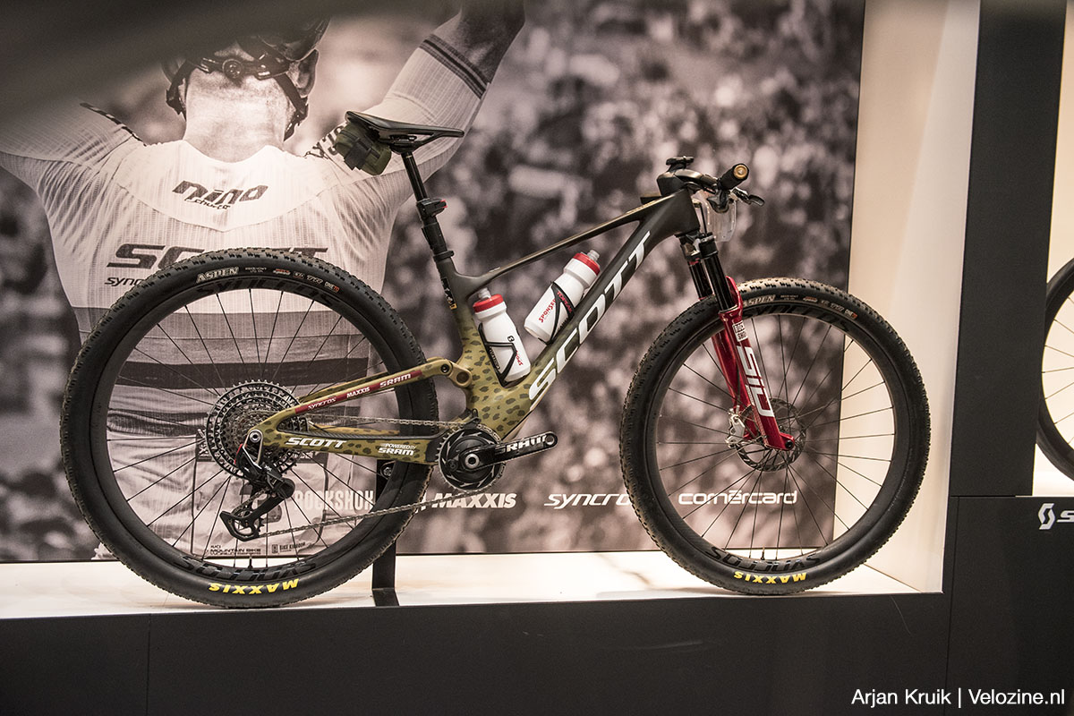 Bij Cosmic Sports was het aandeel mountainbikes op de stand groot.
