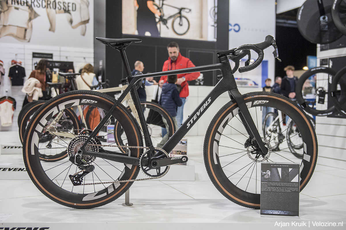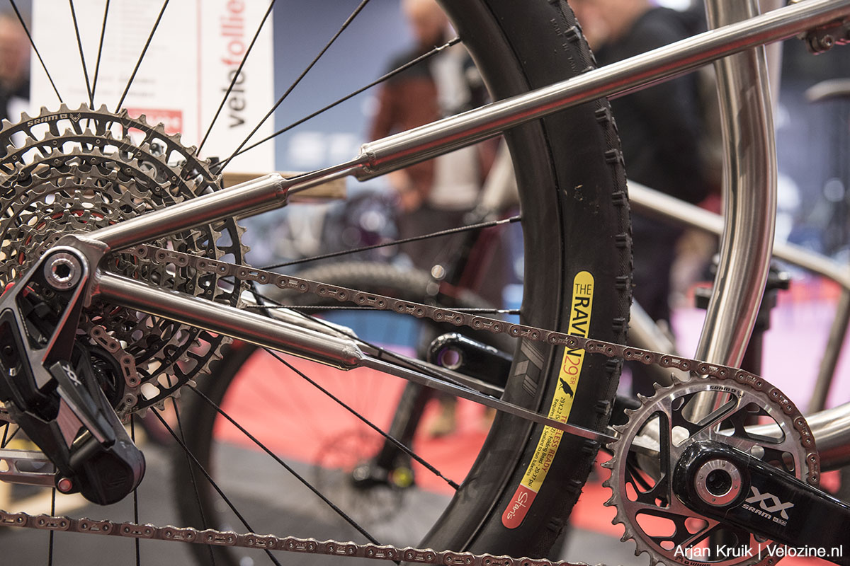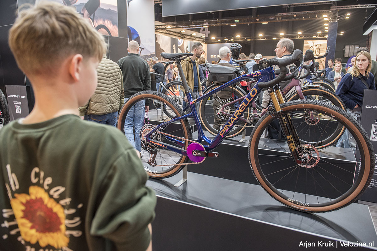 Het magere aanbod aan mountainbikes doet ons natuurlijk wel wat pijn. Ze waren er echt wel; als je goed oplette tenminste. Op sommige stands stonden ze in vol ornaat, op andere stands waren ze vermomd met een gravelstuur. In hoeverre dat soort gravelmountainbikes werkelijk tractie gaat vinden bij gravelbikers valt nog maar te bezien. Ergens hopen we natuurlijk van wel, want dé voordelen van dat soort fietsen betalen zich vooral uit op… juist ja, mountainbikepaadjes. En met een vlak, breed stuur als upgrade komen ze daar vervolgens ook nog eens beter uit de verf. En zo is de cirkel rond en hoeft daarmee niet eens 32 inch te zijn.