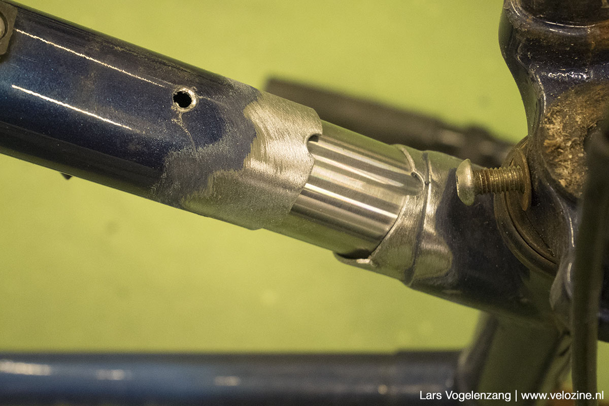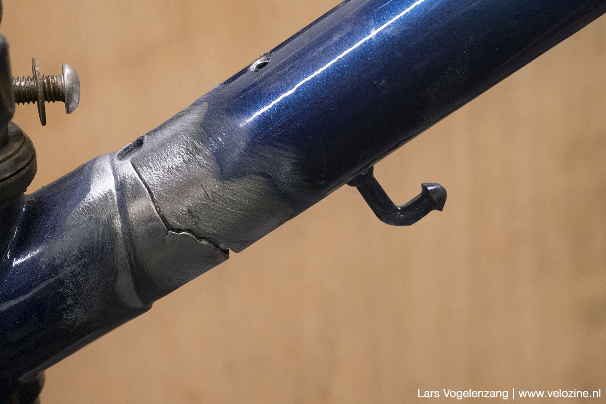 Na een paar dagen fiets(rade)loosheid geef ik het op, en begin al aan een vlammende Evilzone column. Maar dan denk ik nog eens terug aan het aanbod van mijn collega Harjan toen ik bij hem mijn verhaal deed: “Neem dat ding maar mee naar school, dan bak ik hem wel weer in elkaar.” Even twijfel ik nog, dan denk ik: “Hé, Arjan is autoschadespecialist, ik heb een tandartsverzekering, dus wat kan er in hemelsnaam misgaan?” Dus: goed idee! En zo sleepte hij mijn stadsbarrel weg voor de poorten van de hel, en werd deze Evilzone alsnog een Velove.