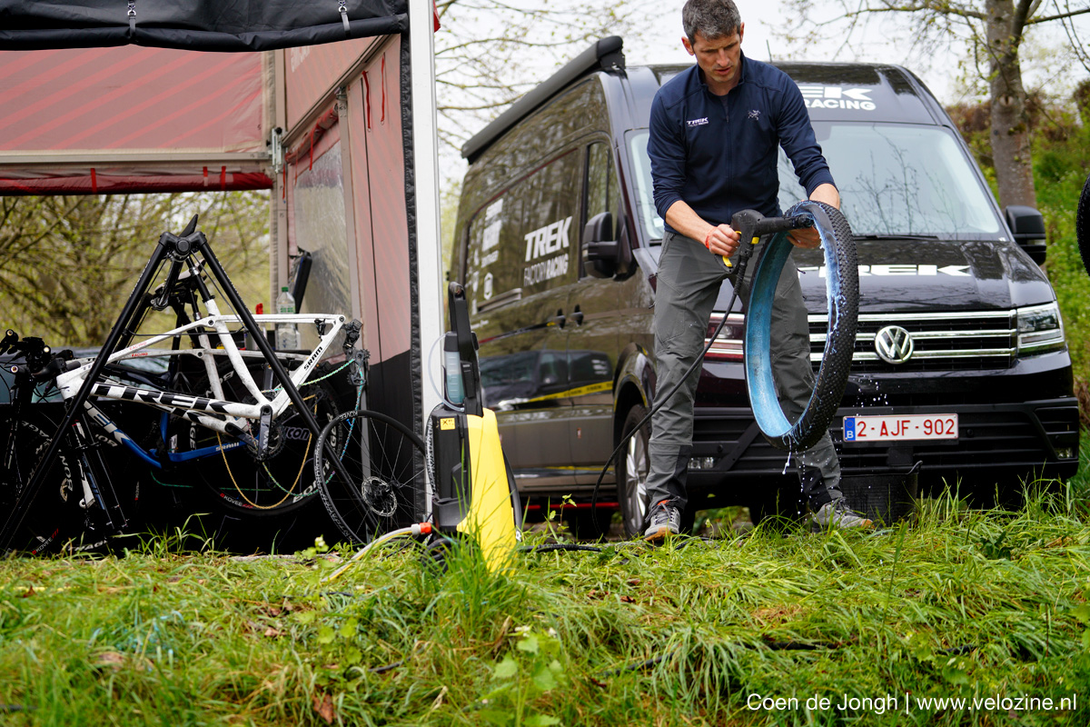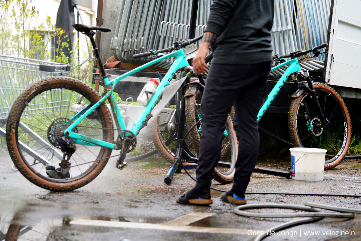 Omdat het kan: met een Rockrider (van Le Décathlon) een World Cup rijden en een fiets schoonspuiten op je Birkenstocks… want die zijn waterdicht!