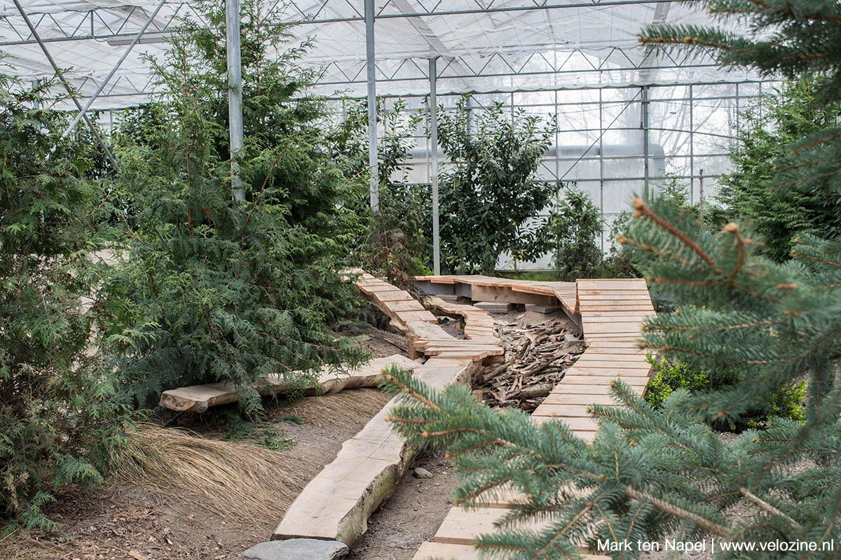 Ook al heeft het bikepark door de corona-toestand nog lang niet de toestroom gehad die het had kúnnen hebben, er zijn al voldoende ervaringen opgedaan om zaken aan te passen én uit te breiden. Zo zijn er een aantal skinnies gemaakt. De skinny-sectie bestaat uit de lijnen met elk een ander niveau, waardoor je op elke moeilijkheidsgraad kunt oefenen. Ook is er een wip bijgekomen. En midden in de kas is er een lange northshore traverse gemaakt om de ronde door de linkerzijde van de kas snel te kunnen verkorten. En er is een hangbrug bij gekomen… Ja, laat dat maar even rustig bezinken. Zover wij weten een unicum in Nederland. Een primeur? Wellicht. Indoor Mountainbike Almere heeft overigens nóg een primeur, maar die is nog under construction, dus daar mogen we helaas nog niets over vertellen…
