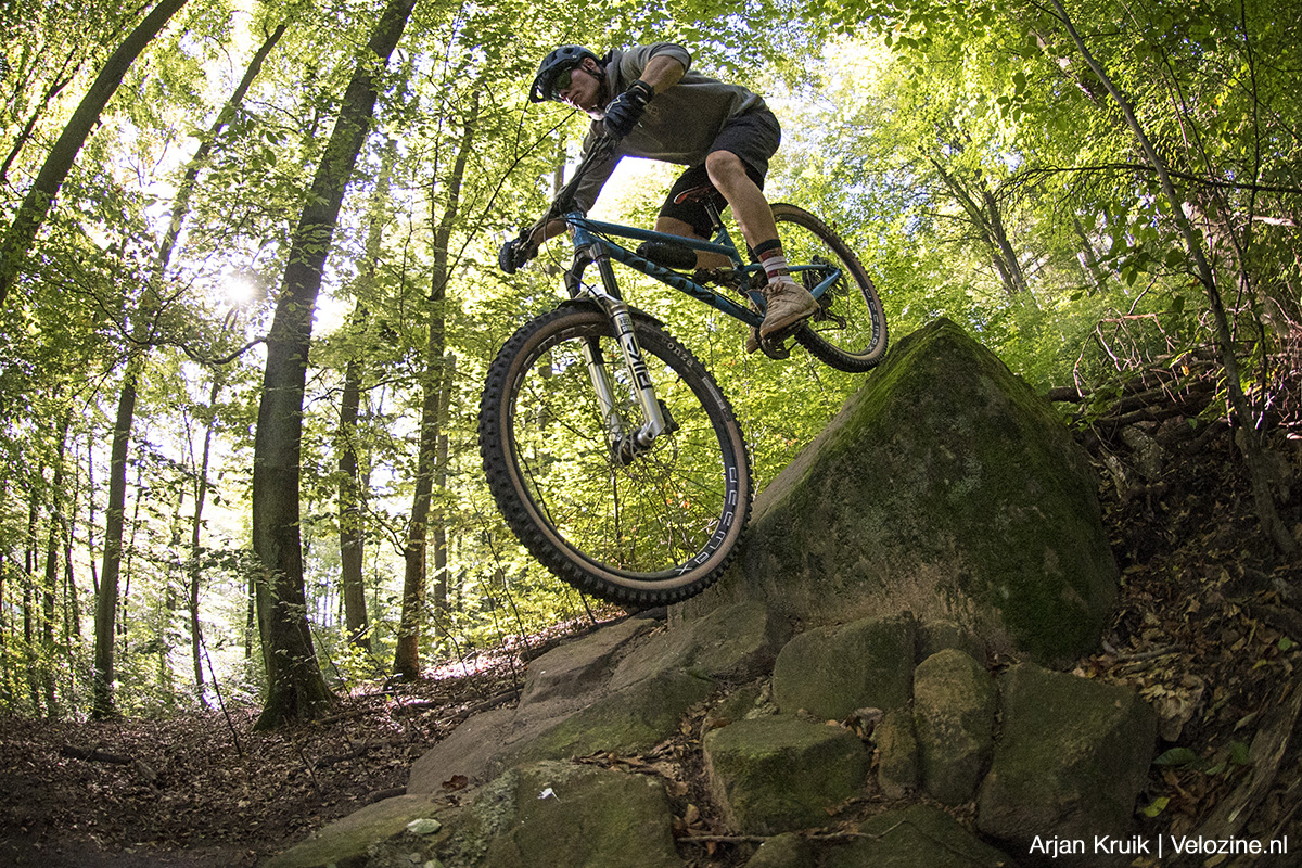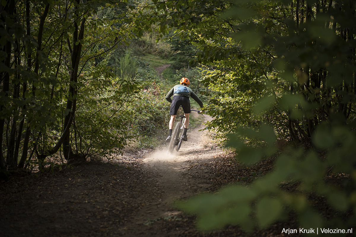 De eerste trail die we indraaien is de rood gemarkeerde Zimmel. Alhoewel ik altijd vol bewondering ben over de snelheid en de skills van Sebastiaan, is wat Martin laat zien toch van een andere orde. Natuurlijk, hij heeft deze trail zelf gebouwd en hij heeft ‘m ongetwijfeld al vele tientallen keren gereden. Maar dan nog. De agressiviteit waarmee hij de trail aanvalt is echt indrukwekkend. Snel, precies, effectief.