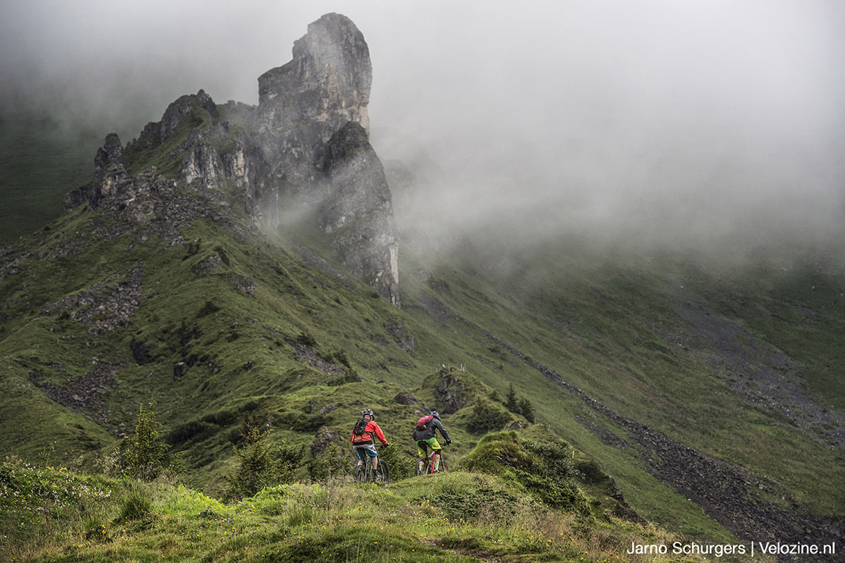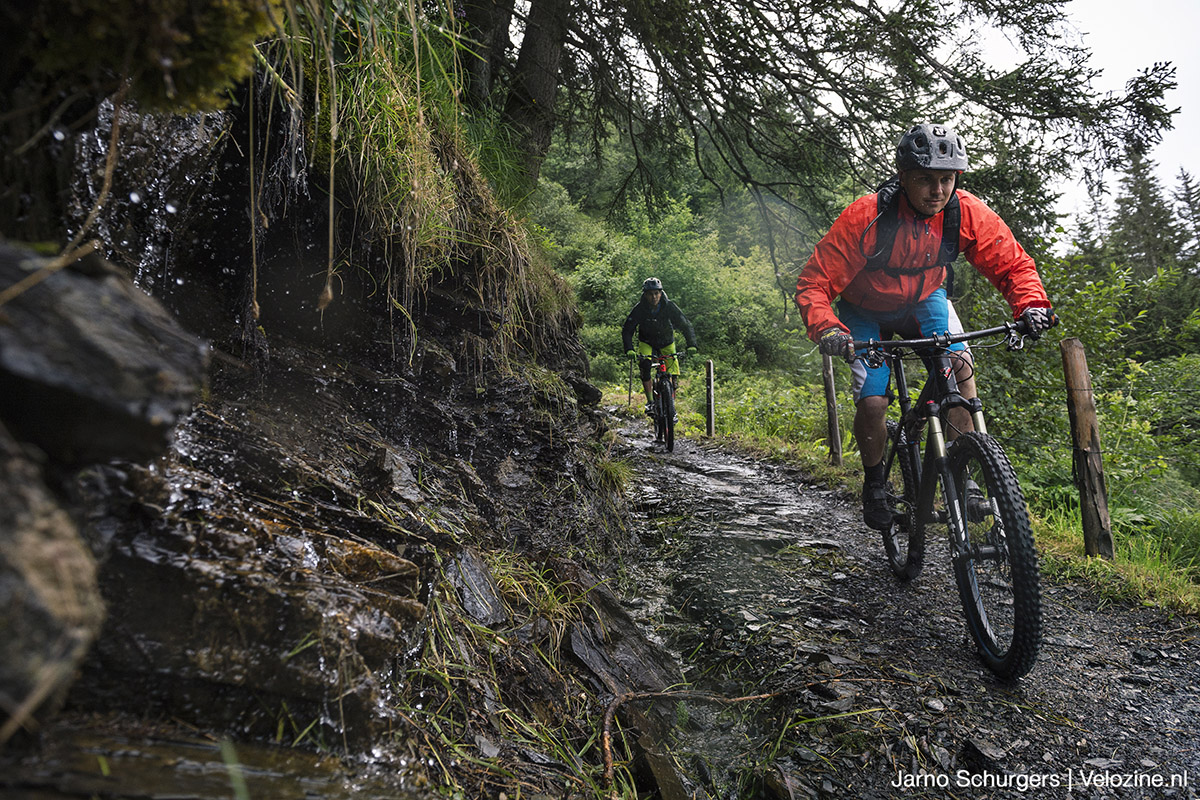 Dachten we dat we het de eerste dag wel voor onze kiezen hebben gekregen als het om listige paadjes gaat, de tweede dag blijkt dat nog maar kinderspel. De Walegg-route die we vandaag met Dario gaan rijden is er echt eentje voor volbloed berggeiten! Vanuit het dal nemen we de lift naar Ristis op 1.600 meter hoogte. Vanaf daar gaat het fietsend over een smal, steil en stenig pad naar bijna 1.900 meter. Dan is het gedaan. Het pad is te steil en te moeilijk en de benen willen ook niet meer. En dus gaan de bikes in de nek en lopen we de resterende hoogtemeters.