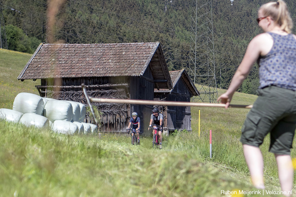 Bovenaan gekomen hebben we meteen het leeuwendeel van het gravel van vandaag gehad. Want al in de afdaling vanaf Maria Waldrast zoeven we over het asfalt, terwijl we links en rechts allerlei spannende paadjes zien. Dat blijft vervolgens de rest van de dag een beetje zo. “Waarom rijden we dáár niet?” wijst mijn wijsvinger regelmatig. Hoe mooi de omgeving de rest van de dag ook is, die gedachte laat me niet echt meer los. Wellicht zitten er wat verboden paadjes tussen. Toch krijg ik het idee dat de parcoursbouwer hier wat moois heeft laten liggen.