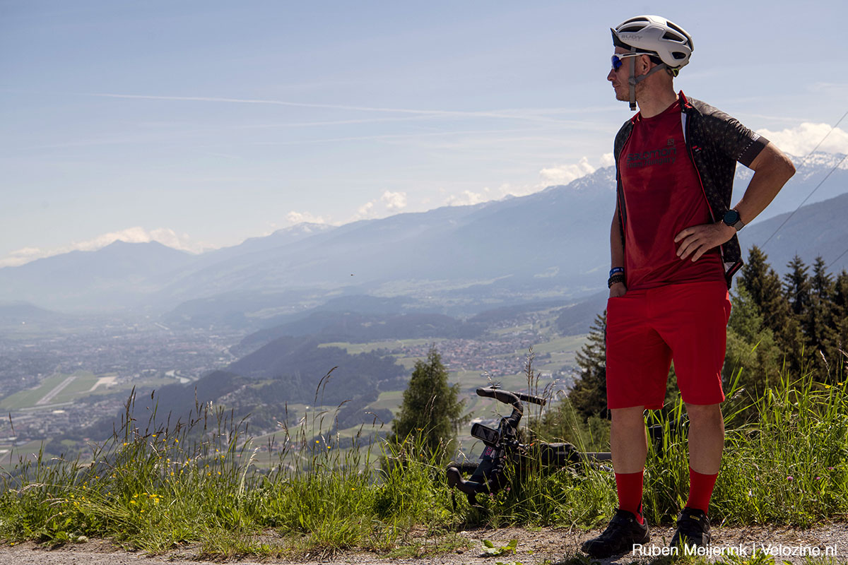 Een wat vlakker stuk geeft de adrenalinespiegel wat kans om te dalen. En na wat op- en-neer werk en een schofterig snelle asfaltafdaling traverseren we langs Innsbruck, naar – verrassing – een uitgebreide, lange lunch.
