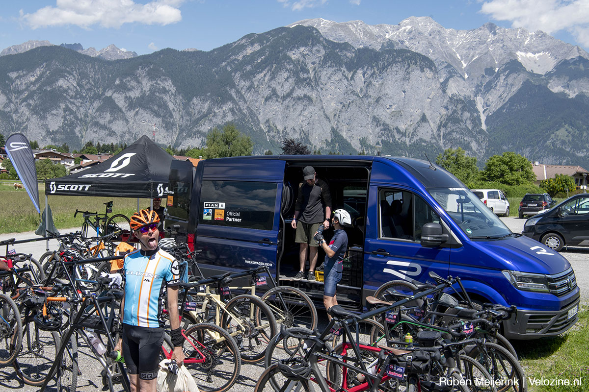 Eerst even wat stats. De VW R Gravelbike Experience zou als meerdaagse graveltocht in drie dagen dwars door de Alpen gaan van het Duitse Garmisch-Partenkirchen naar Bressanone in Italië. Een paar weken voor de start werd deze verplaatst naar het Oostenrijkse Biberwier. De reden? De G7 top had “heel Garmisch afgehuurd”. En wij maar denken dat G voor gravel stond… Hoe dan ook, daardoor werden de totale afstand en klimmen wat lager dan de initiële 256 km met 5.800 hoogtemeters. Er was plek voor 100 deelnemers, waarvan 59 plekken geboekt werden. We fietsten in groepjes van circa 10 personen. Op drie Nederlanders, een Canadees stel en een verdwaalde Hongaar na waren die allemaal Duits.