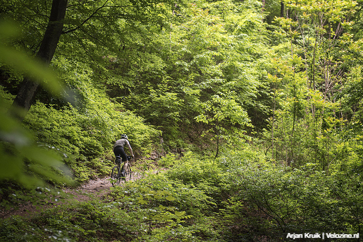 Tijdens het eten moeten de jasje moeten aan, want de lucht is inmiddels helemaal dichtgetrokken. En we houden ze aan, want na de Krabes Alm gaat de route alleen nog maar omlaag. Dat wil niet zeggen dat het verder kinderspel is. Het met kleine rivierkeitjes bestrate pad waarover de gps ons naar beneden dirigeert is best lastig. Niet eens omdat het zo steil is, maar met name vanwege de gladheid van die keitjes. En als er op een gegeven geen bestrating meer is, maar alleen maar een dikke laag blubber, voelt het eerder als veldrijden dan als gravelbiken.