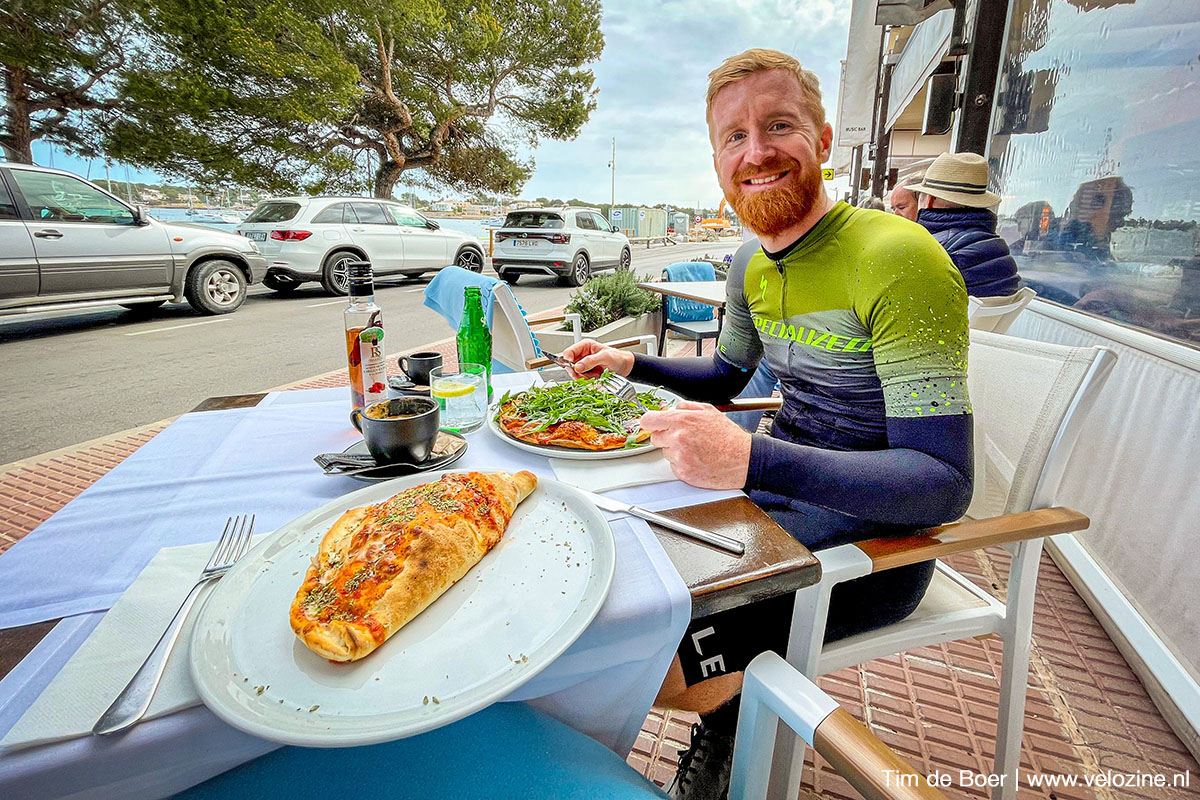 De laatste dag betekent ditmaal ook de langste dag. We rijden met de auto naar het midden van het eiland waar we opstappen voor een 130 kilometer lange gravelroute naar de oostkust van Mallorca. De route is prachtige, grote brede, lange gravelstroken, klimmen en single trails. We vermaken ons uitstekend, maken foto’s, redden een van zijn moeder gescheiden lam en genieten van de zon. Een klein foutje is helaas snel gemaakt en voor ik weet lig ik op de grond. Vallen zonder erg als je honger hebt bestaat jammer genoeg niet. Gelukkig heeft het eerste bewoonde huis een apotheek verborgen liggen in de badkamerlade. De dames des huizes helpt met het schoonmaken en verbinden van mijn wondjes. De pizza in de haven van Portocolom stilt de honger en mijn humeur. Met goede moed stappen we weer op voor de weg terug.
