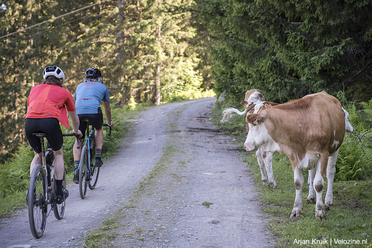 Die volgende berg is de Rettenbachkopf op bijna 1.500 meter. Om daar te komen volgen we eerst Großglockner-Hochalpenstraße, maar na een kleine vier kilometer buigen we af naar rechts, de bergen in. Ook hier is het weer aanpoten geblazen. De route loopt volledig over onverharde grind- en boswegen, met stijgingen tot wel 15 procent. Oftewel: Frank heeft het weer zwaar op z’n laagland-Koga. Sebastiaan, die op z’n Cube Nuroad met 2×10-transmissie de beschikking heeft over een 30 voor en een 42 achter, heeft het wat dat betreft een stuk minder lastig.