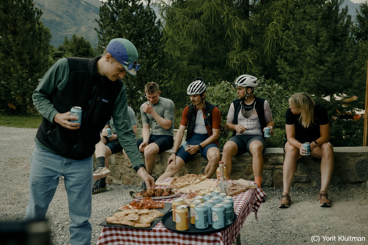 Na een koffiepauze in Sestriere ligt de iconische Strada dell’Assietta voor de wielen. Dit is een stoffige grindweg op een hoogte boven de tweeduizend meter die door enkele van de meest ontzagwekkende vergezichten in de regio slingert. De heldere lucht maakt de uitzichten nog onvergetelijker, een hoogtepunt van Le Pilgrimage 2024, zowel letterlijk als figuurlijk. Na de afdaling van de Colle delle Finestre brengen sommige pelgrims de nacht door in een hotel in Susa. Anderen bivakkeren in de bossen aan de voet van de klim van de volgende dag naar Caserma Grotte del Seguret, op meer dan 2.200 meter.
