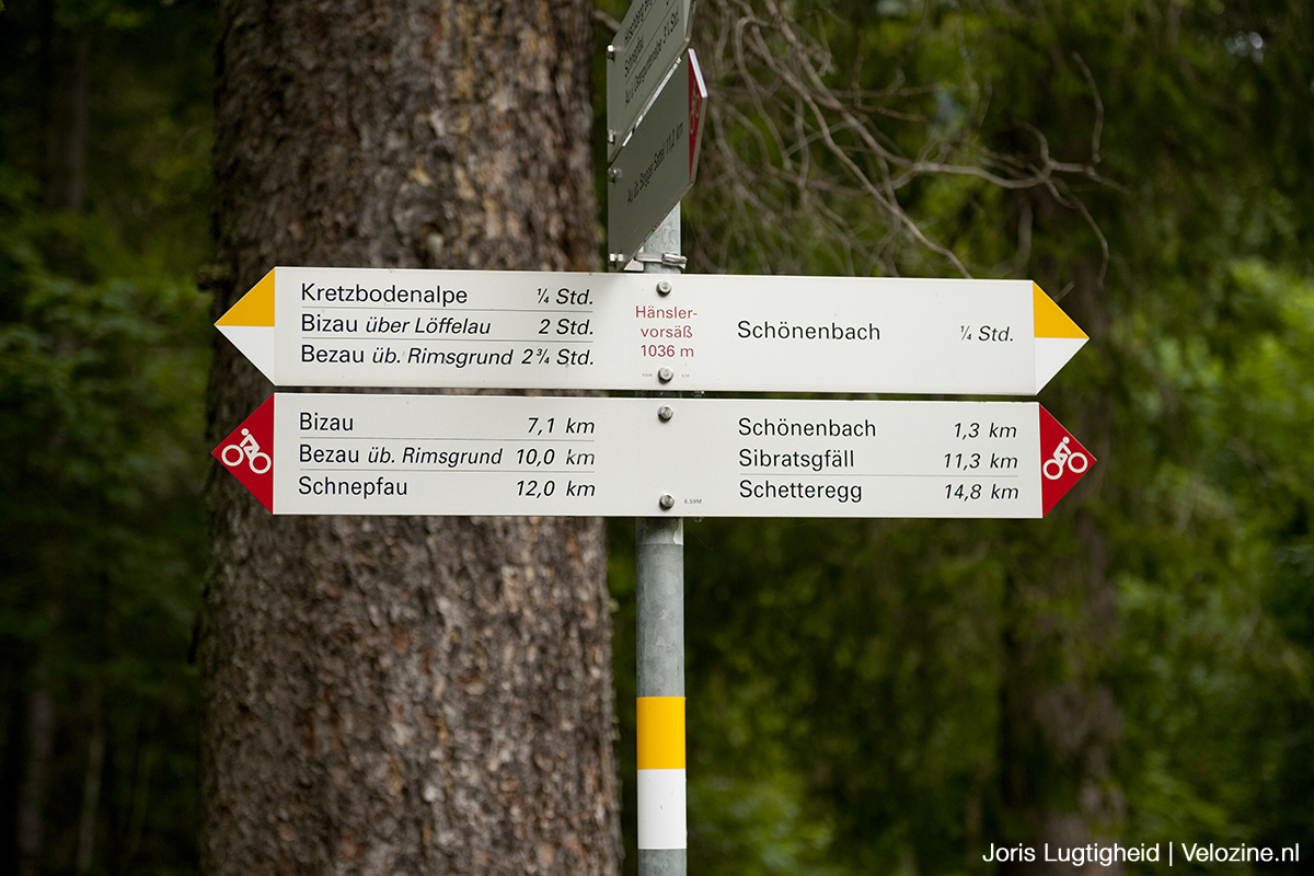 Toen we van de organisatie Mountain Bike Holidays een uitnodiging kregen om te gaan biken in het Bregenzerwald, moest ik even goed nadenken. Bregenzerwat? Bregenz ken ik wel. Dat is een stad aan de Bodensee, in het westelijkste puntje van Oostenrijk, tegen de Duitse grens aan. Daar stond ik vroeger, toen de tweede buis van de Pfändertunnel nog niet klaar was, vaak in de file. Daarna ging het gas weer open om – afhankelijk van de tijd van het jaar – door te rijden naar de ski- of mountainbikegebieden in Tirol. Dom dom dom. Immers, als ik toen geweten had wat ik nu weet, had ik véél eerder een afslag naar links genomen, het Bregenzerwald in.