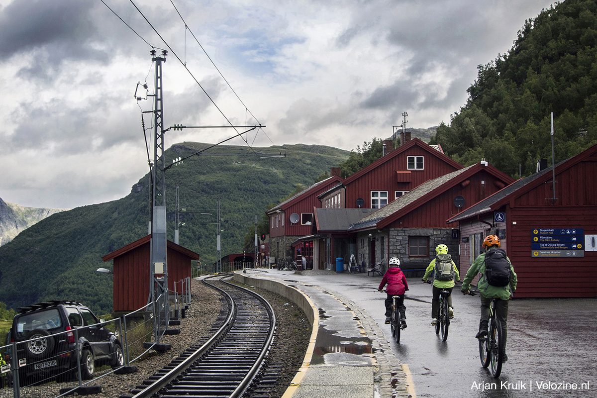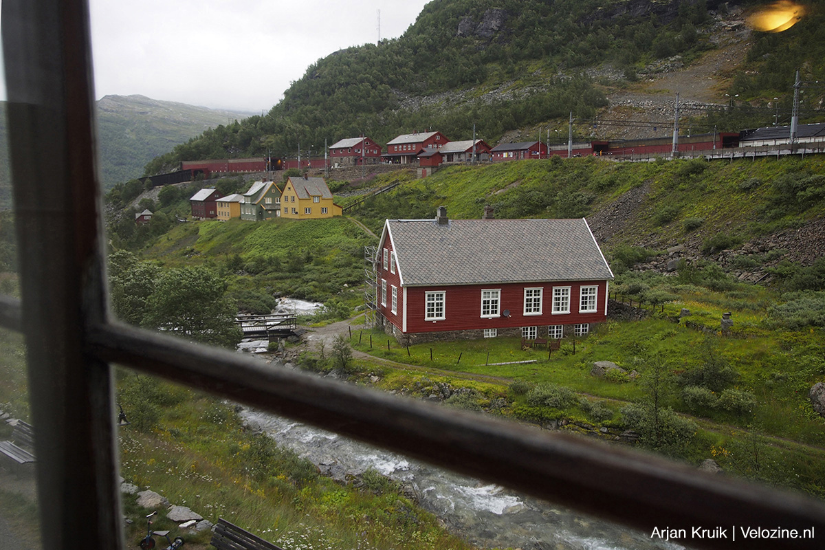 Ook wij sturen omhoog richting Myrdal. Onze overnachting staat hier gepland. Morgen pas wachten ons de eenentwintig haarspeldbochten naar Flåm. Althans, dat is het plan. De volgende ochtend, bij het ontbijt in het leuke en gastvrije familiehotel Myrdal Fjellstove, besluiten we het plan aan te passen: het regent namelijk pijpenstelen en dat blijft de hele dag zo. Natuurlijk, daar kan je je met een goede regenjas tegen wapenen. Echter, onze trein terug van Flåm naar Myrdal (en vervolgens door naar Haugastøl, waar mijn auto staat) vertrekt pas ’s middags om vijf uur. Om dan in de regen de hele dag in Flåm door te brengen… En dus kijken we ’s ochtends in plaats van ’s middags door de raampjes van de trein naar buiten en zien we het landschap waar we gisteren nog zo intens van genoten hebben in een flits voorbij gaan. Mooi avontuur, die Rallarvegen.