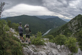 Onze fietsen van dienst zijn niet van die geitenwollensokkentanks om driehonderd kilo bagage mee te vervoeren, maar snelle en lichte gravelbikes. Joris en ik zijn namelijk van het lichtgewicht reizen. Twee achtertassen, dat is meer dan genoeg. Zo gaat dat bij ons. Wij maken het niet graag ingewikkeld. Dan kom je nog eens ergens namelijk.