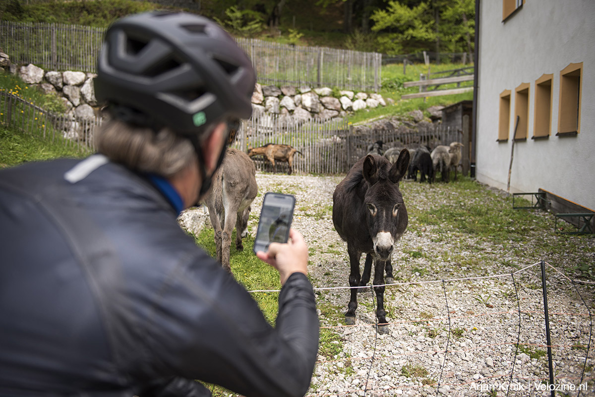 Maar onder het motto ‘pijn is fijn’ komen we allemaal boven, bij de op iets meer dan 1.700 meter gelegen Gräner Ödenalpe. Tijd voor de beloning: een fraai uitzicht en een kop koffie en een bord pasta. Oeps! Als we het zadel tussen de tweeduizenders Litnisschrofen en Krinnenspitze oversteken en aan de andere kant van de bergkam een klein stukje afdalen naar de berghut, blijkt-ie dicht. We zijn te vroeg, de hut gaat pas in juni weer open. Nou ja, het uitzicht is wél open en dat is – zeker in combinatie met de meegenomen koeken – ook wat waard. Hey gasten, welke route zullen we morgen gaan rijden…?