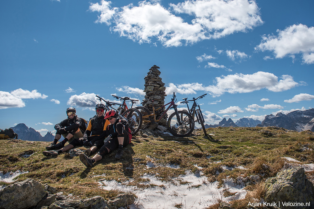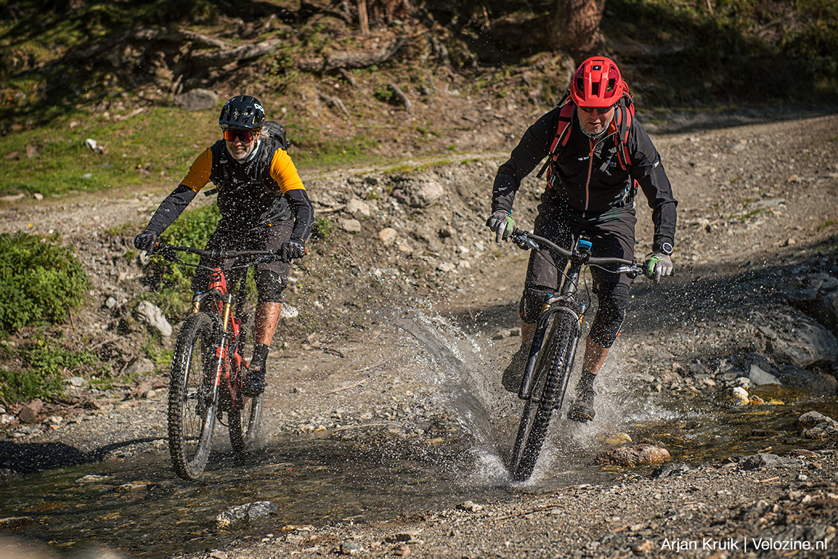 Maar wel of geen motortje, dat maakt Arno helemaal niets uit. Ik had het er net al over, maar Arno’s rijtechniek is echt mindblowing. Een supertechnische klimsectie die wij bij wijze van spreke met de fiets over de schouders al nauwelijks kunnen overmeesteren, rijdt hij met een mix van brute kracht en trial-technieken gewoon omhoog. We kijken elkaar met open mond aan: huh, hoe kán dit!? Later, na deze trip, ben ik ben ook met een paar andere Zuid-Tiroler bike-guides op pad. En wat blijkt: allemaal kennen ze Arno! Z’n skills zijn ook bij de locals legendarisch.