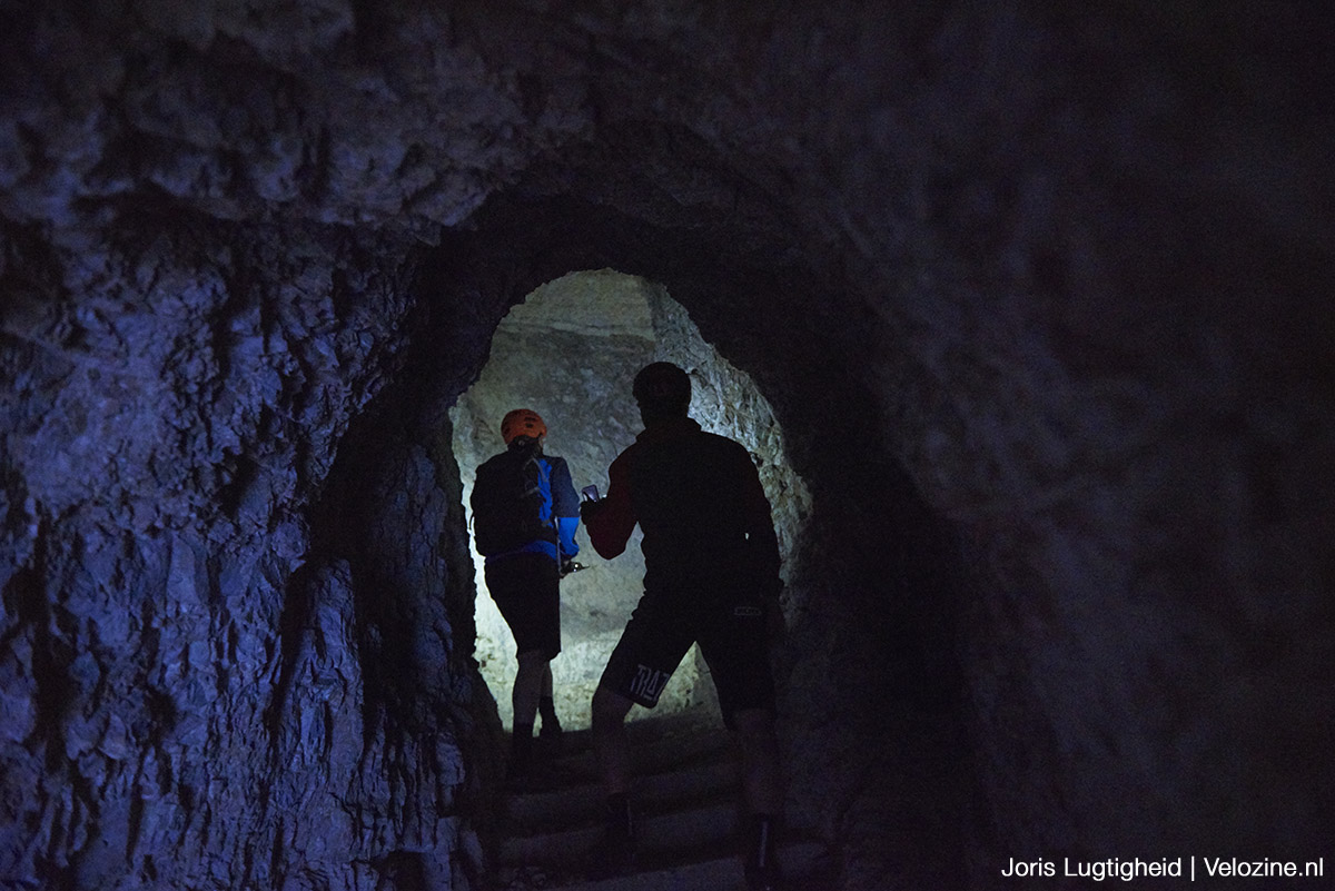 Elf haarspeldbochten en ruim vijfhonderd hoogtemeters later bereiken we Fort Plätzwiese, een Oostenrijks fort dat de pashoogte bewaakt. Ernaast ligt de Dürrensteinhütte. Tijd voor een lekker Italiaans bakkie op het terras! Maar eerst bekijken we het fort natuurlijk even. “Toen de oorlog uitbrak, was dit fort uit 1889 al erg verouderd. De technische ontwikkeling ging in die tijd namelijk razendsnel en het fort was niet sterk genoeg voor de nieuwste granaten”, legt Michael uit. “Om de Plätzwiese toch te kunnen beschermen tegen aanvallen uit het zuiden, zijn toen in de rotsen boven het fort tunnels uitgegraven.” En daar gaan we natuurlijk ook even in.