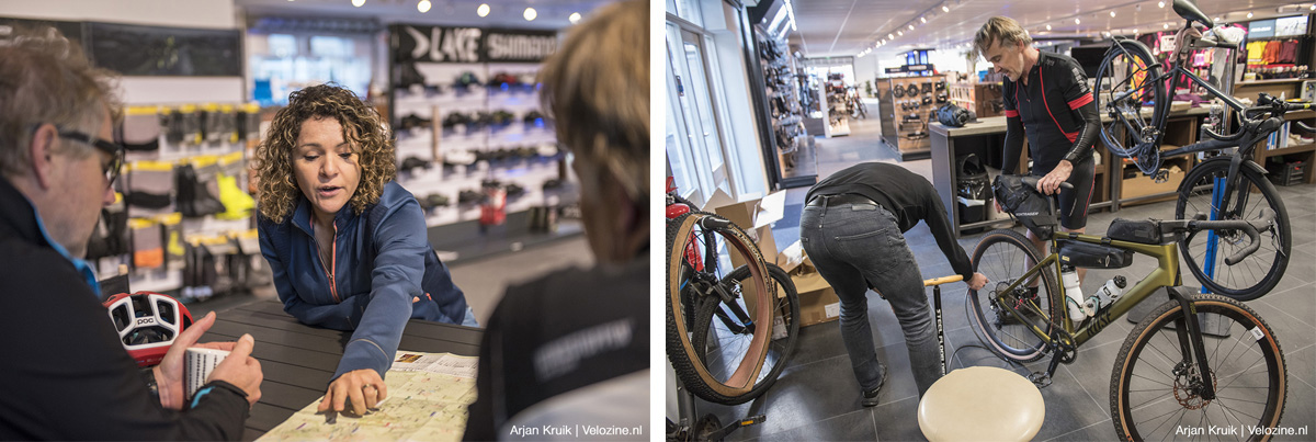 Heb je wel een gravelbike, maar geen tassen? Bij de Bike Store in Zutphen, waar we even zijn binnengevallen voor een bakkie en een reservebandje, vertelden ze dat ze bikepackingtassen verhuren. Slim initiatief, want als je maar drie dagen gaat gravelen is het kopen van zo’n tassenset is nogal aan de prijs. Huren is dan goedkoper.