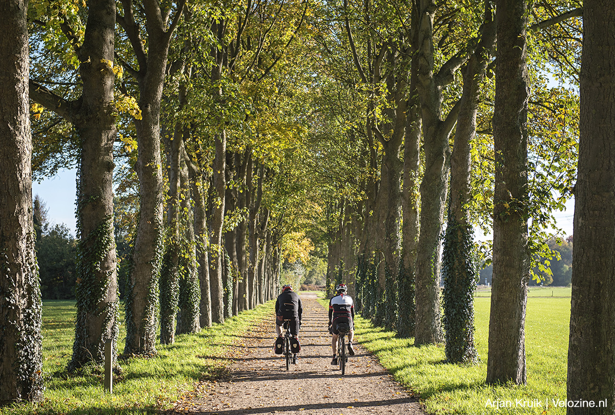 De driedaagse gravelroute die we rijden loopt vanaf Zutphen eerst naar het noorden, daarna een klein stukje naar het oosten parallel aan de A1, om vervolgens af naar het zuidoosten of te buigen met Winterswijk als eindpunt. We rijden dus min of meer diagonaal van het noordwesten naar het zuidoosten door de Achterhoek. Nou krijg je natuurlijk nooit 220 kilometer op de teller als je dat stuk in een rechte lijn rijdt. No worries, aan efficiënt van A naar B fietsen hebben de routemakers niet gedacht. Maar wél aan het meepakken aan zoveel mogelijk onverharde stroken. Wie vindt dat de verbinding tussen twee punten een rechte lijn moet zijn, kan dus beter niet in de Achterhoek gaan gravelen, want de Trans-Achterhoek gaat echt álle kanten op.
