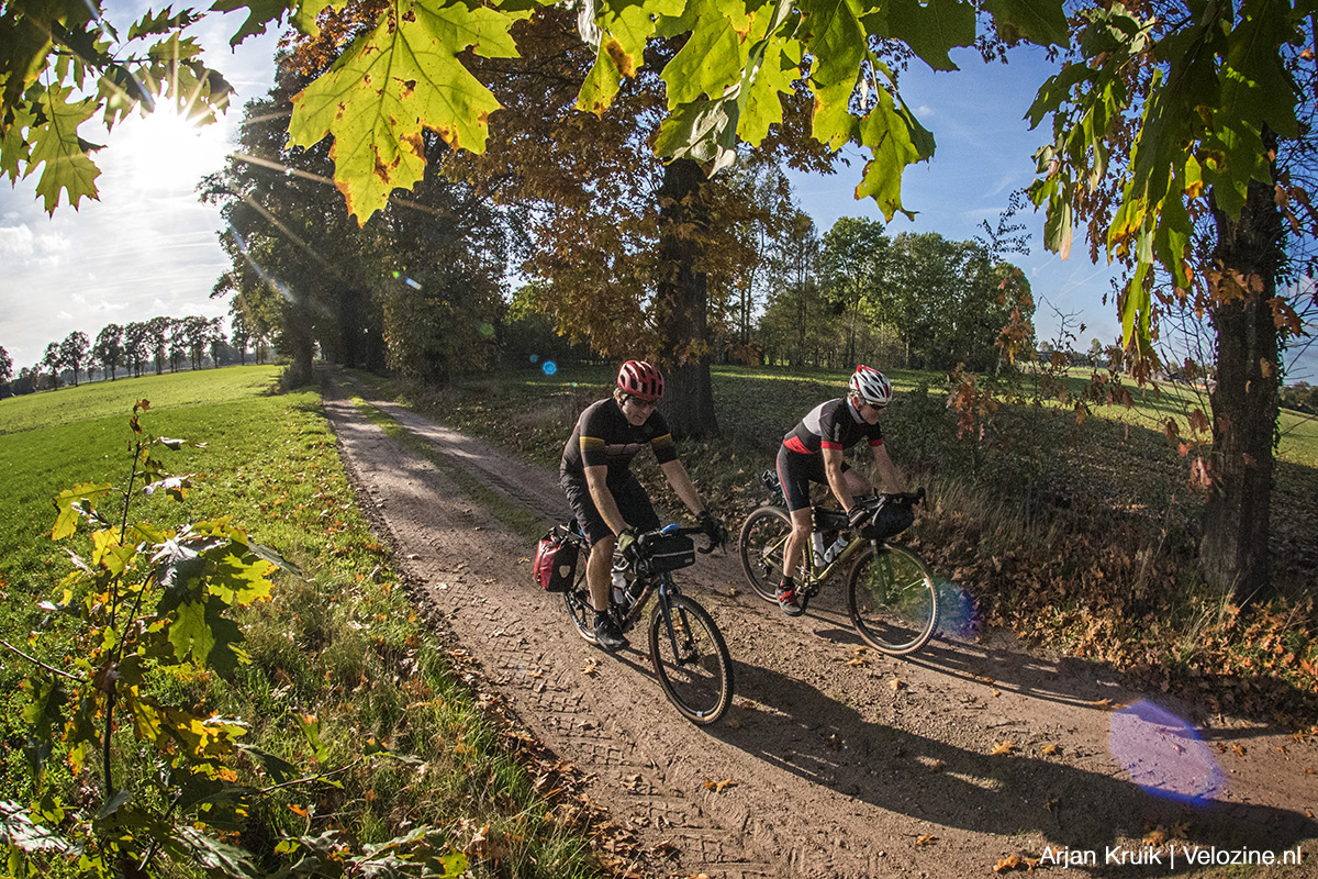 Het idee voor een Trans-Achterhoek ontstaat als ik voor Velozine met m’n fietsmaatjes Henk en Frank de nieuwste Achterhoekse mountainbikeroutes aan het verkennen ben. Ze hebben er daar een heleboel van en de meeste zijn grotendeels versingletracked. Maar de verbindingen tussen die slingersecties lopen vaak over oude onverharde veld- en boswegen. Voor de moderne mountainbiker zijn die wellicht wat aan de saaie kant, maar voor de gravelbike zijn ze ideaal, zo beseffen we als we na alwéér een heftige bochtenbarrage op zo’n fraaie zandweg aan het uitblazen zijn. En aldus ontstaat het plan om een paar dagen door de Achterhoek te gaan trekken op de gravelbike.