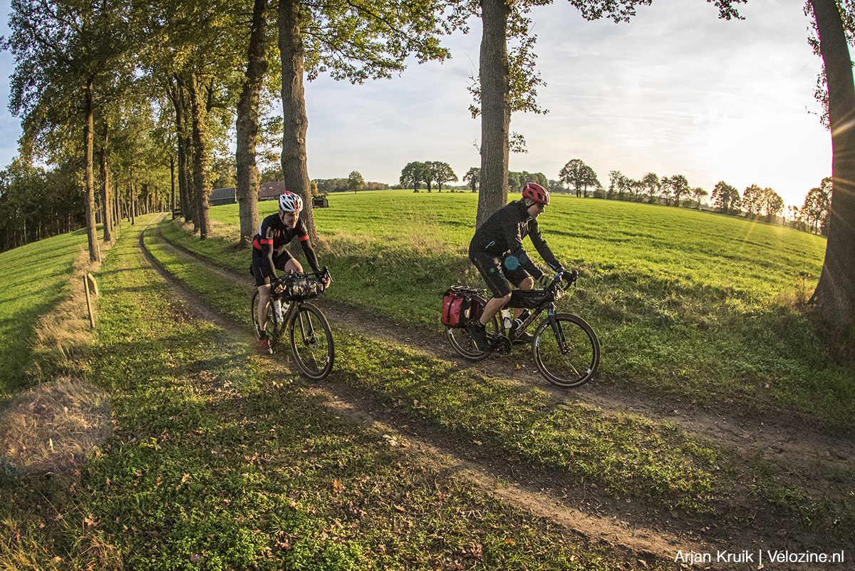 Gravelen hebben we natuurlijk vaker gedaan, maar het is de eerste keer dat we meerdere dagen met tassen onderweg zijn. Moeten dat echte bikepackinggear zijn, met speciale tassen aan de zadelpen, in het frame en aan het stuur? Of volstaan ‘ouderwetse’ fietstassen aan een bagagedrager ook? We proberen het gewoon allebei. Beide systemen hebben hun specifieke voor- en nadelen, die we jullie later in een uitgebreid testverslag nog uit de doeken zullen doen. Maar de korte conclusie is alvast, dat beide manieren van spullen meenemen ronduit voldoen. Niet dat we veel bij ons hebben, we zijn immers maar twee nachten van huis. En met een beetje slim inpakken en combineren heb je niet veel nodig.
