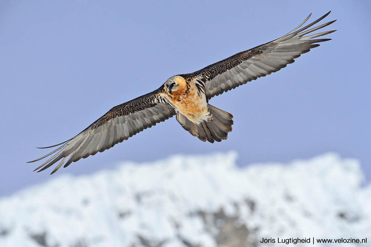 “Lammergieren”, weet grote Joris. “Die kunnen zomaar een spanwijdte hebben van tweeënhalve meter of meer.” Kleine Joris en ik kijken grote Joris met verbazing aan? Is hij naast fotograaf nu ook nog ornitholoog geworden? Het antwoord is minder prozaïsch; Joris blijkt een jaar eerder voor een wandeltijdschrift een reportage gemaakt te hebben in het Zwitsers Nationaal Park, aan de andere kant van deze bergen. En daar, zo heeft hij toen geleerd, zijn in de afgelopen decennia lammergieren uitgezet. Ze schijnen het er goed te doen. “Ze eten karkassen van gemzen, steenbokken en ander wild dat in de bergen dood gaan,” doceert onze onverwachte vogelkenner, “en tegenwoordig komen ze ook buiten het park voor.” Waarvan akte.