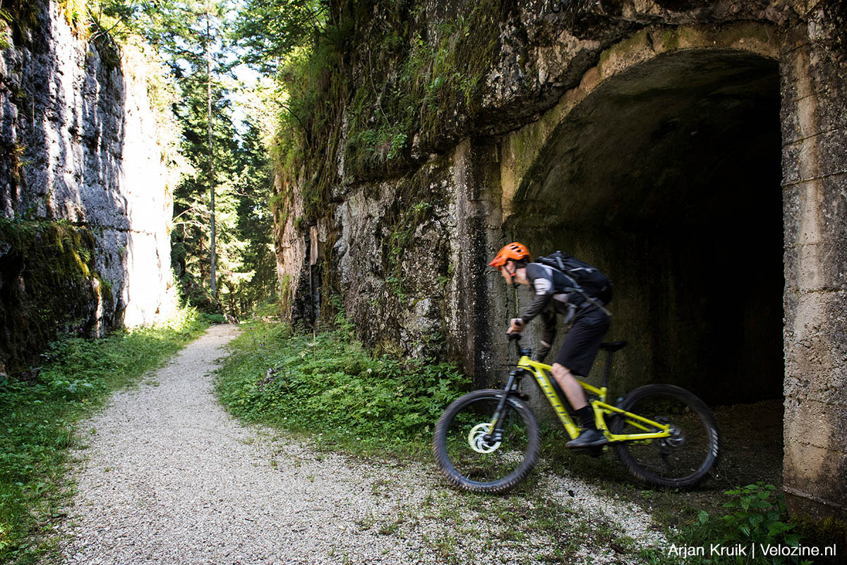 Dan zijn er langs de route, het is immers de 100 Chilometri dei Forti, nog de vele getuigen van de Eerste Wereldoorlog. En ook al interesseert La Grande Guerra, zoals de Italianen deze oorlog nog steeds noemen, je helemaal niets, als je in Alpe Cimbra aan het biken bent kun je er niet omheen. Die gruwelijke oorlog van ruim een eeuw geleden is nog overal zichtbaar. Je ziet het aan de huizen en gebouwen van de dorpjes, die grotendeels van ná 1918 zijn, omdat nagenoeg alles werd platgeschoten. Maar ook de bomkraters die nog steeds zichtbaar zijn in de bossen en weilanden. Of de nog steeds aanwezige tunnels en loopgraven. En in de bergwegen die ooit zijn aangelegd door Oostenrijkse genietroepen, om de natuurlijk de beroemde forten aan de randen van het hoogplateau nog niet te vergeten.