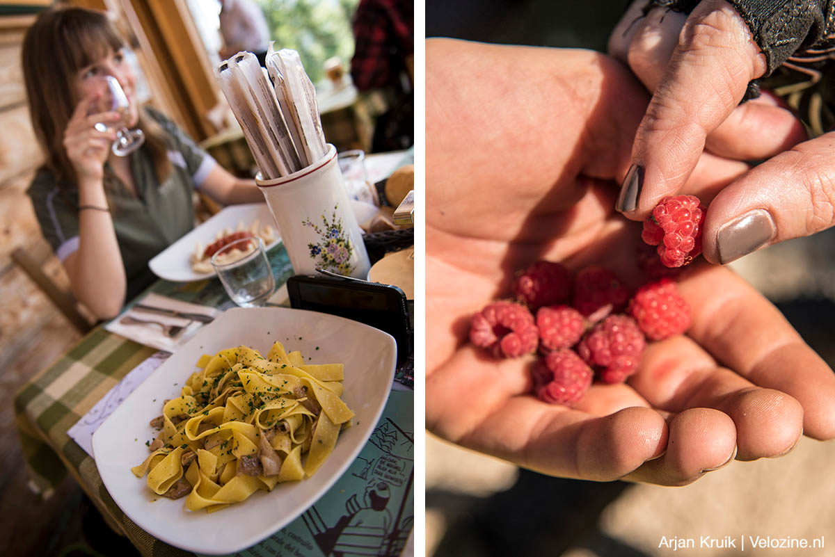 Of de ondersteuning van een elektromotor, zoals wij. De beklimmingen en afdalingen zijn namelijk relatief vlak en als ze wel wat steiler zijn, duren nooit echt lang. Daardoor flow je, zeker op een e-mtb, als het ware door het landschap. En natuurlijk zijn er – het is uiteraard wel Italië – volop plekken om even snel een cappuccino te drinken of te lunchen. Neem voor dat laatste wel de tijd, want aan snel even een broodje kaas naar binnen duwen doen de Italianen niet. En eerlijk gezegd, dat zou ook zonde zijn, gezien het lekkere eten dat hier op de terrassen geserveerd wordt.