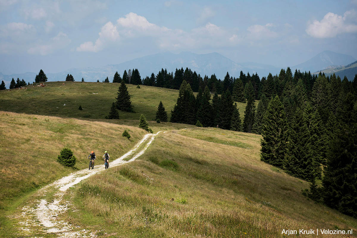 Mountainbiken in Alpe Cimbra is een bijzondere ervaring. Niet alleen vanwege die forten, maar ook vanwege de zeer fraaie omgeving. Ondanks dat we ruim boven de duizend meter zitten, is het landschap dat de hoogvlakte karakteriseert eerder glooiend dan bergachtig, met afwisselend dorpjes, weilanden en bossen met sparren, lariksen en beuken. En door dat gevarieerde landschap slingeren smalle, onverharde wegen en paadjes. Daarover is het heerlijk biken, ook als je niet de conditie van een prof hebt.