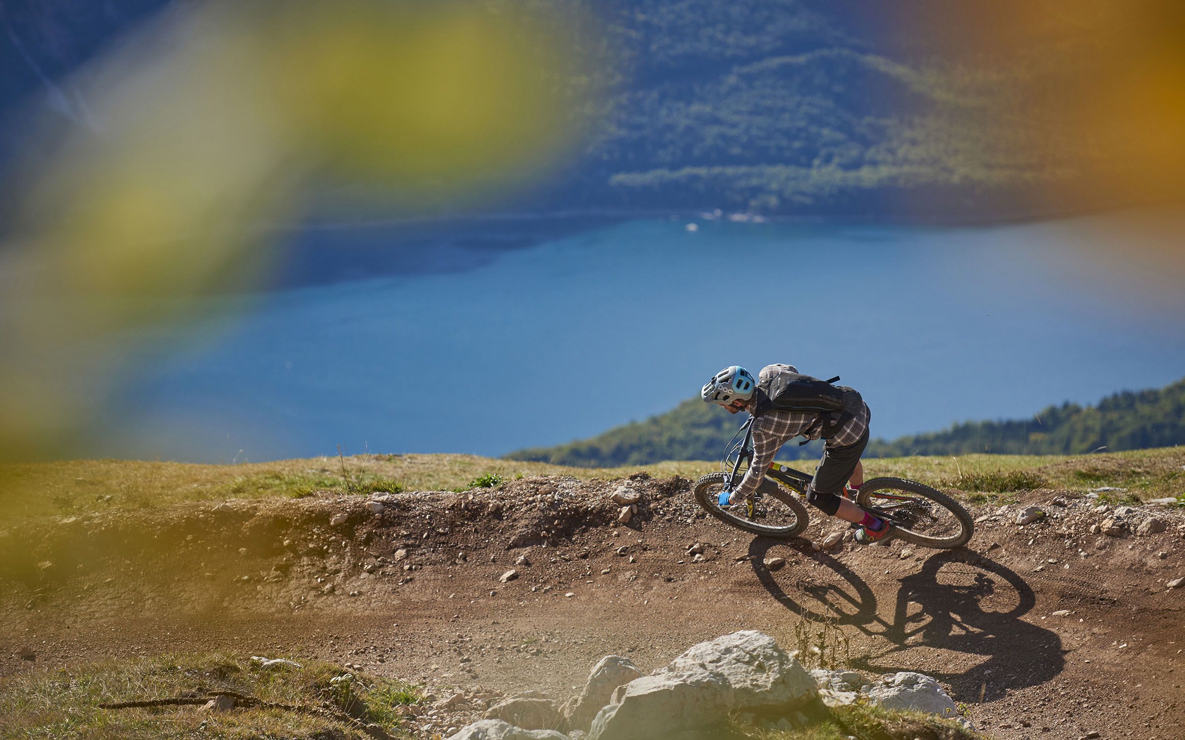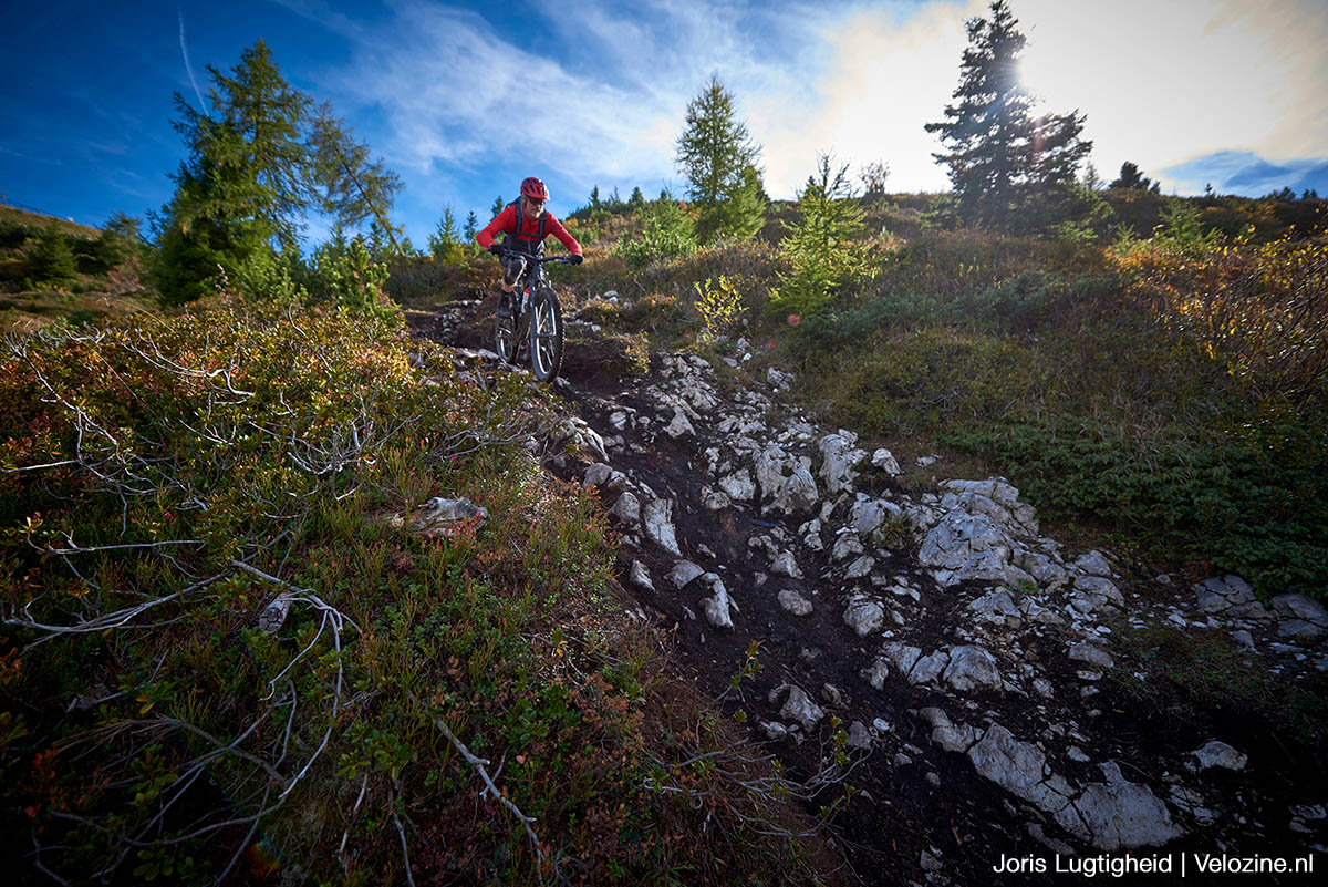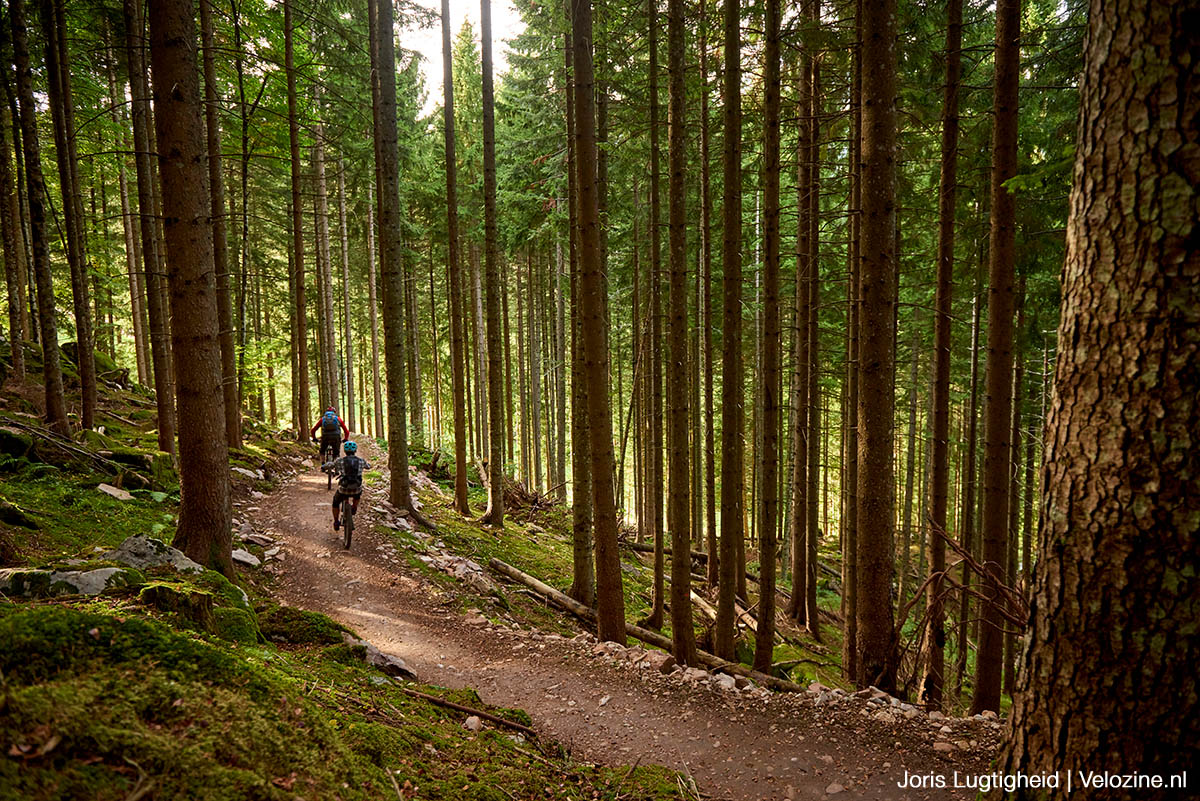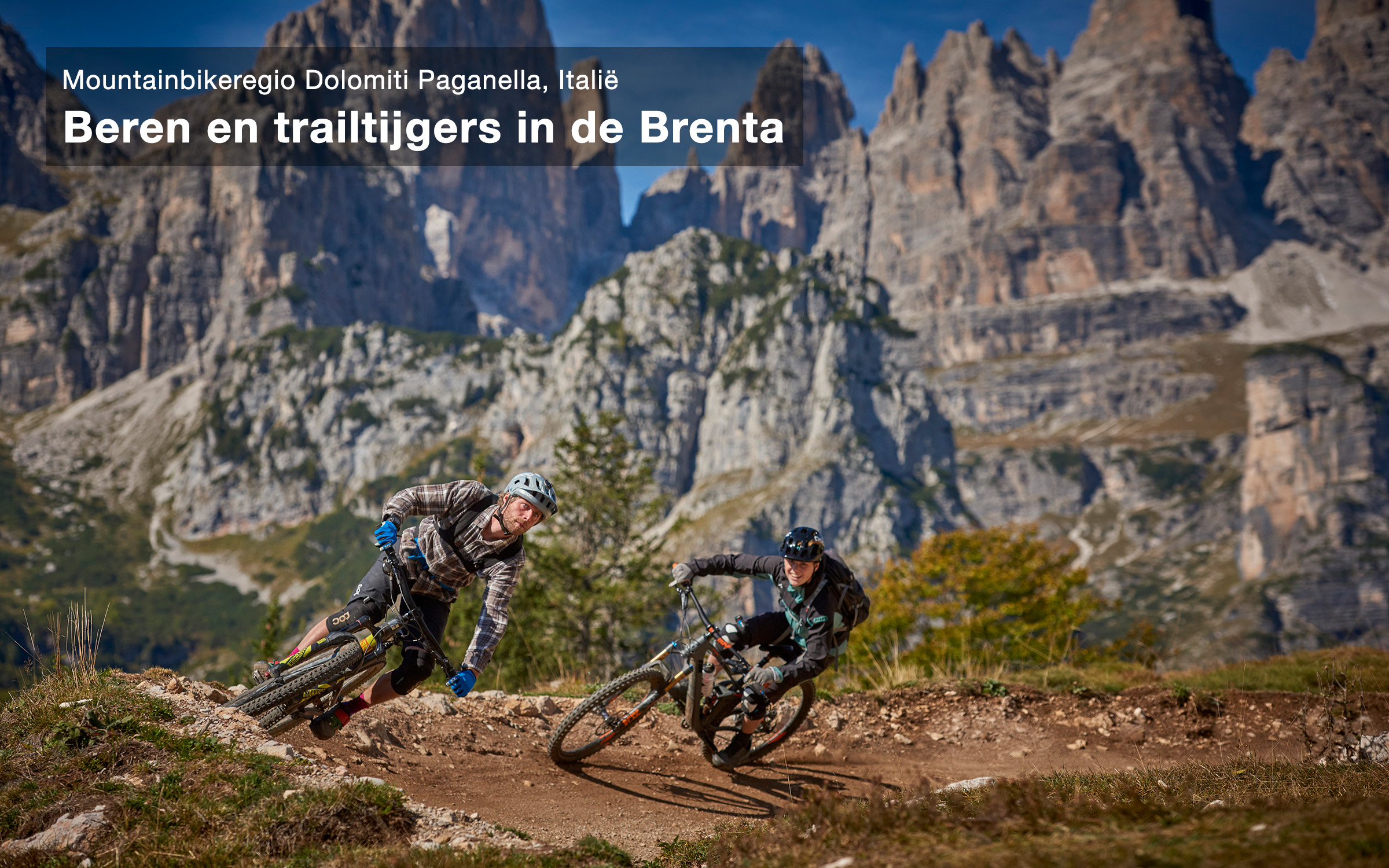 Onder de naam Dolomiti Paganella Bike profileert dit gebied zich als dé mountainbikebestemming van de oostelijke en centrale Alpen. Hun langste trail biedt 14 kilometer en 1.800 (!) hoogtemeters aan aaneengesloten bochtenpret. Dat is andere koek dan onze Heuvelrug, met z’n maximaal 40 hoogtemeters afdalen aan-een-stuk. Het afdaalplezier in Dolomiti Paganella Bike is overigens niet voorbehouden is aan downhillers met full-face-helmen. Juist niet. Je kunt er als laaglandbiker op je dubbelgeveerde trailbike of zelfs hardtail óók van genieten. Hoe ik dat weet? Ik ben er afgelopen zomer op uitnodiging van de plaatselijke VVV geweest, samen met mtb-fanaat Sebastiaan en mountainbikefotograaf Joris Lugtigheid. En, dat verklap ik vast, we hebben het er enorm naar ons zin gehad!