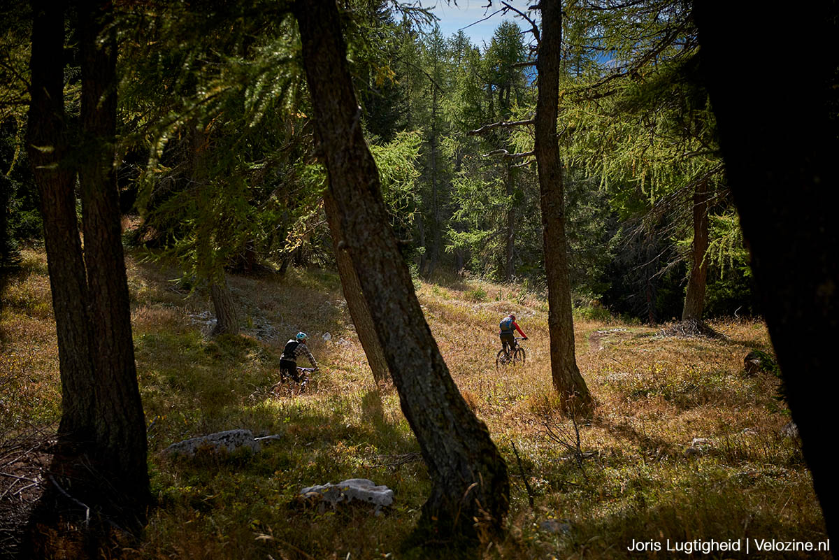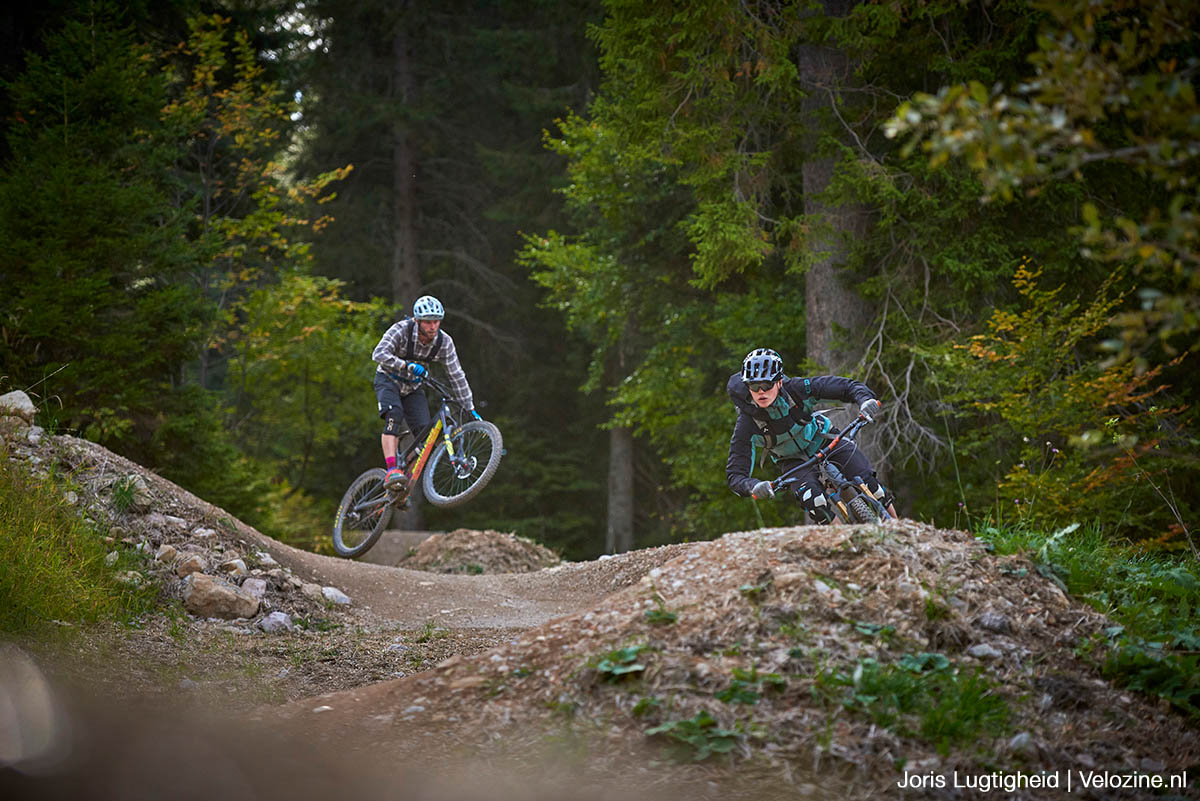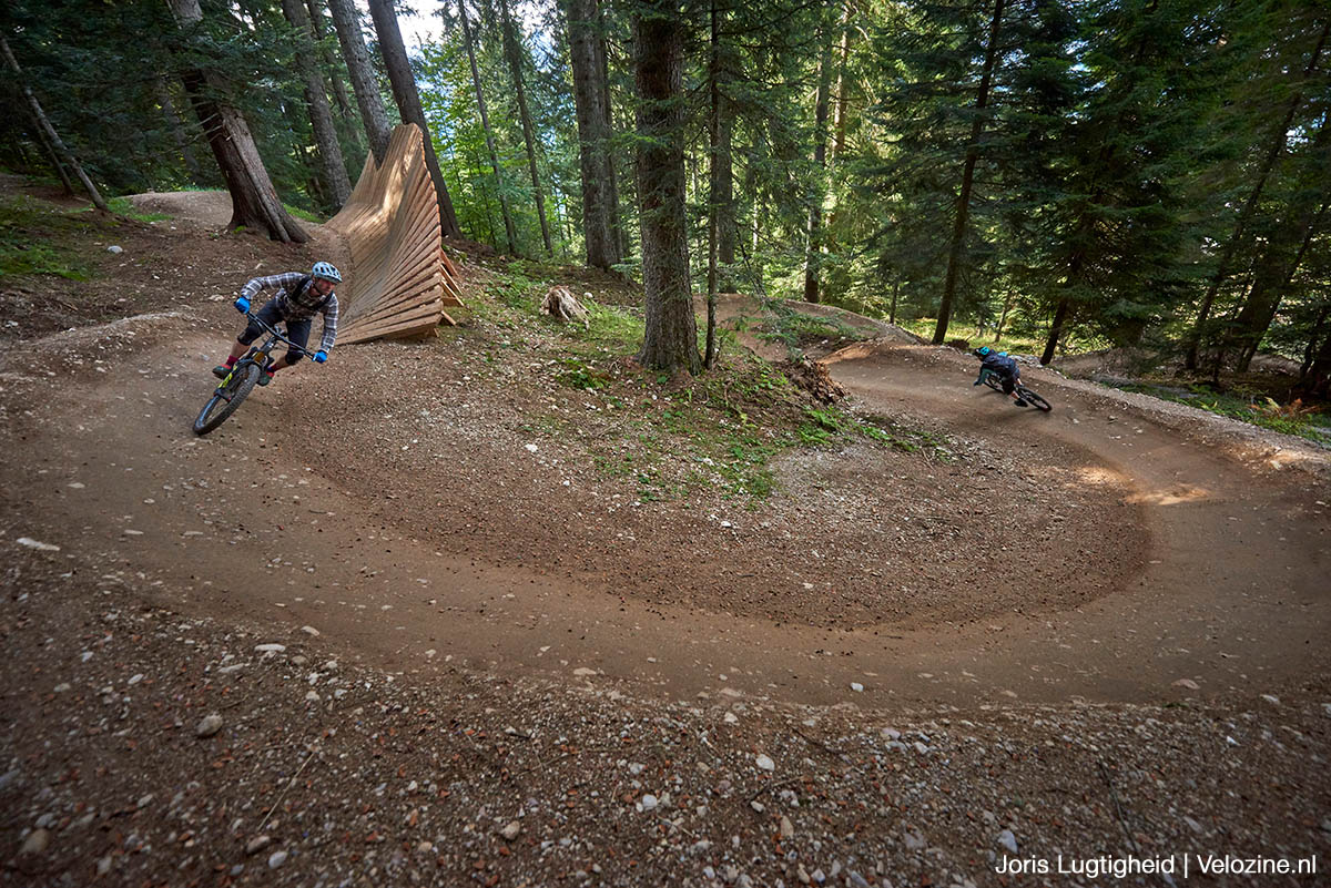 “Je krijgt remknippen als het pad niet goed in elkaar zit”, weet Davide. Als Sebastiaan en ik hem vragend aankijken legt hij uit wat hij bedoelt: “Een goede flowtrail moet je met zo min mogelijk hard remmen door kunnen rollen. Alleen dan blijft de trail lang goed. Je kunt het zelf zien; de Willy Wonka is de hele zomer in gebruik geweest en ligt er door de bank genomen nog strak bij. Dat is trouwens niet alleen fijn voor jullie, maar ook voor ons, omdat zo de onderhoudskosten binnen de perken blijven.” Klinkt logisch. Maar hoe weet hij dit allemaal? Dan komt de aap uit de mouw: “Ik heb met het team van Danger Zone Trail Solution deze flowtrails zelf helpen bouwen.”
