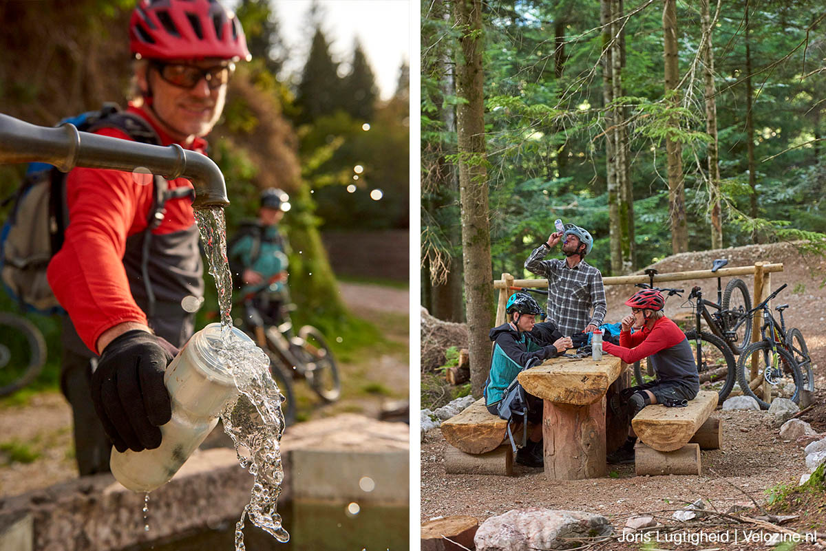 Na een kilometer of drie gaat de trail over in de Willy Wonka, die zelfs nog iets meer easy-going is. En dat is wat mij betreft positief, want ik kan me volledig op het rijden concentreren zonder dat ik te hard ga of overmatig moet remmen. Dat laatste is trouwens echt een dingetje hier, merk ik als we even wat drinken en een reepje eten bij een lunchplek langs de trail en ik vraag hoe het kan dat er nauwelijks remknippen in het pad zitten.
