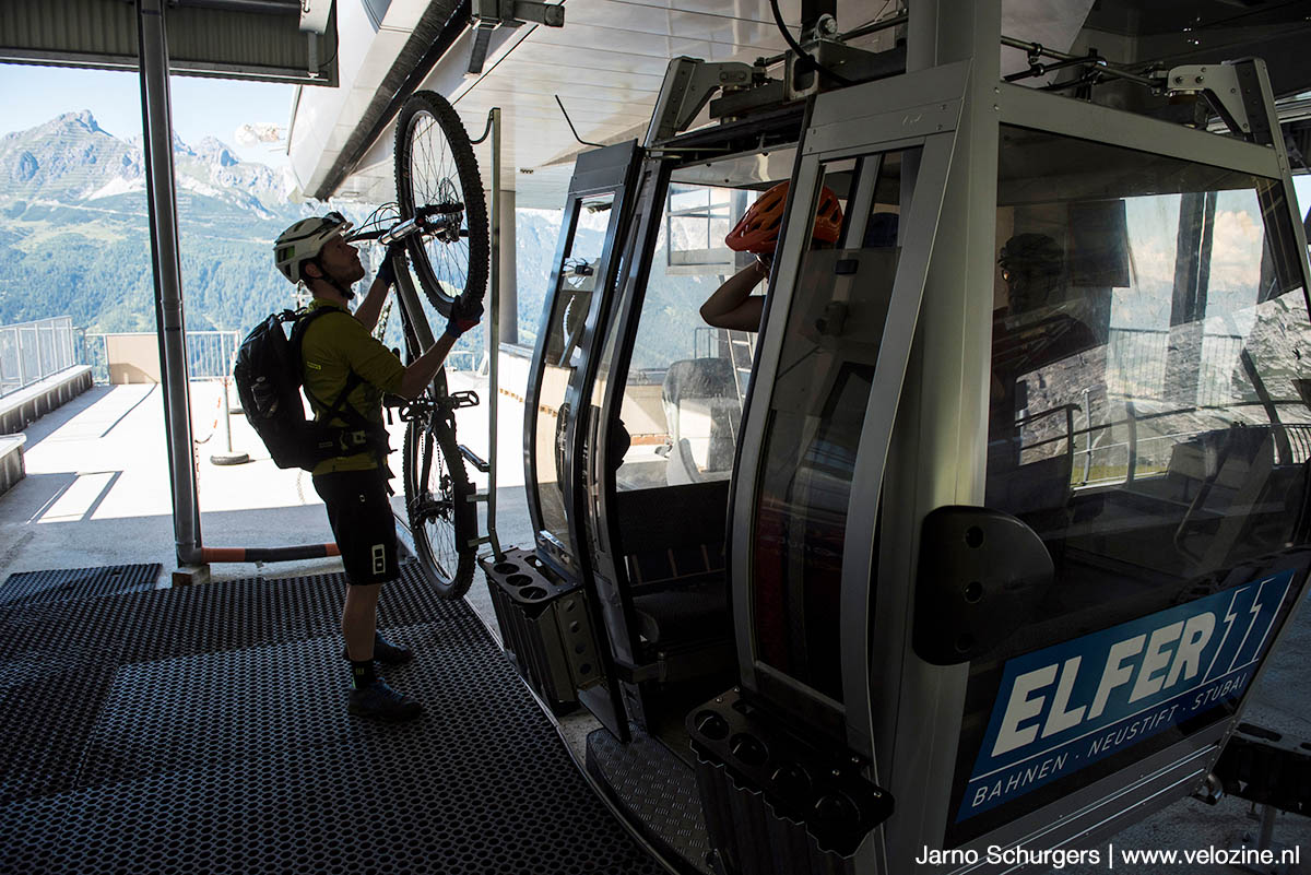 “De uitbaters van de Elferbahn rekenen niets extra’s voor het meenemen van de bike. En dat hebben we in de Alpen nog maar weinig meegemaakt. Goed geregeld!”